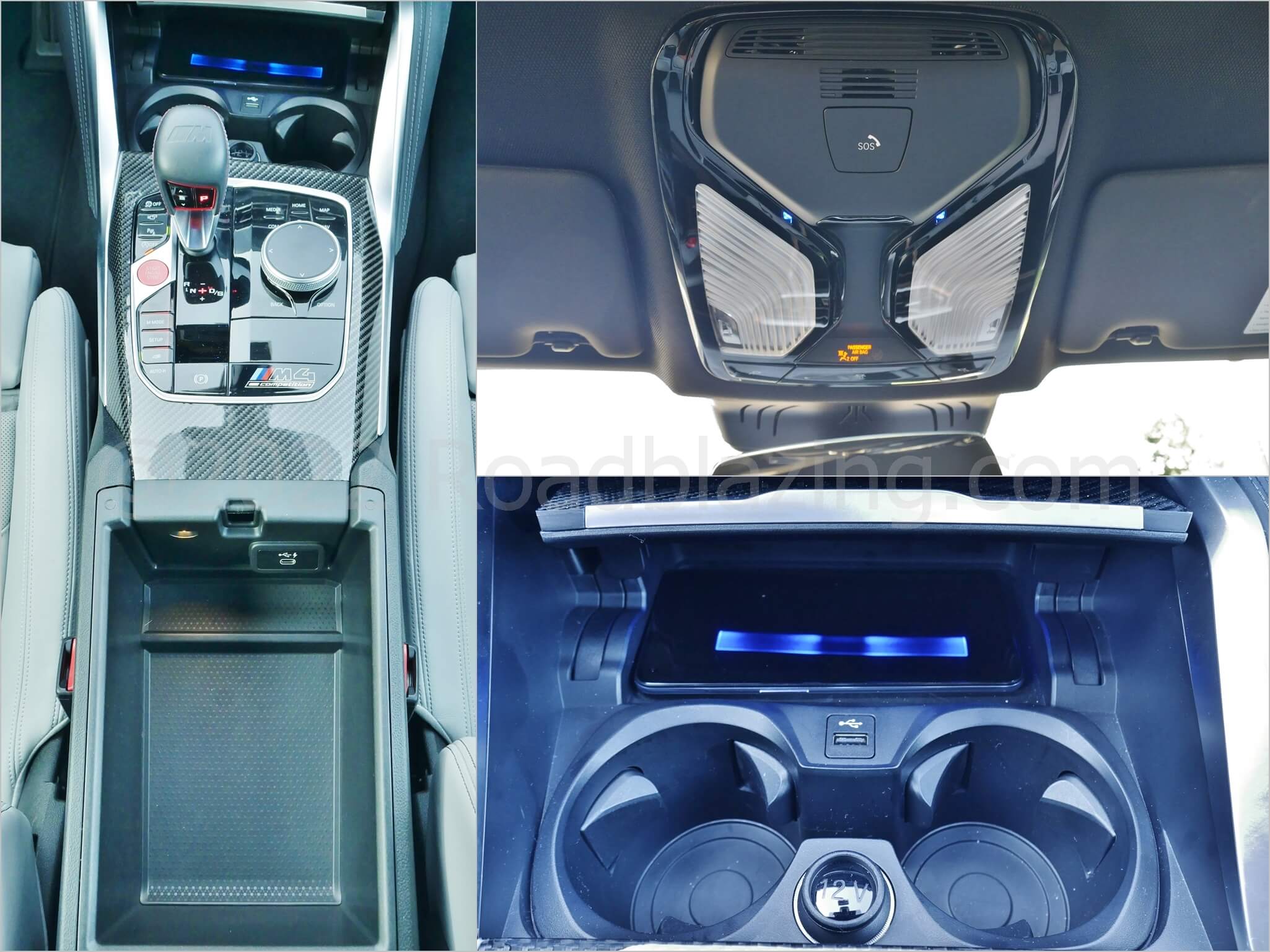 HOW PEOPLE FRIENDLY: There used to be a [largely true] rumor that 3- Series (sedan analog to the 4- Series), situated as BMW's young business school's graduate premium driving fare, previously exhibited rather stark if straightforward cabin appointments. The G82 4- Series interior has made strides in interior furnishings. The 2022 M4 Competition boasts woven carbon fiber, aluminum & tucked seam soft panels on the fixed 2nd Row window ledge as part of the bespoke trimmings complement.