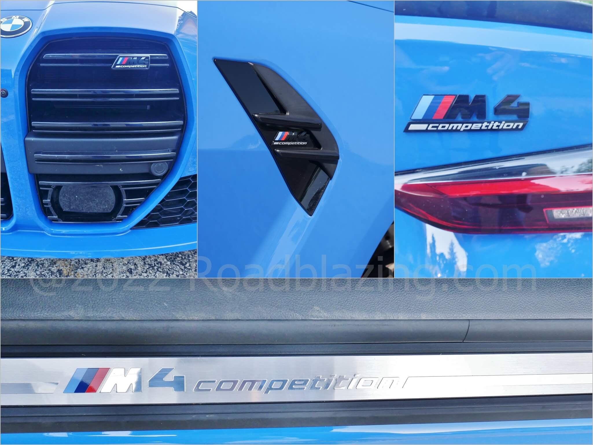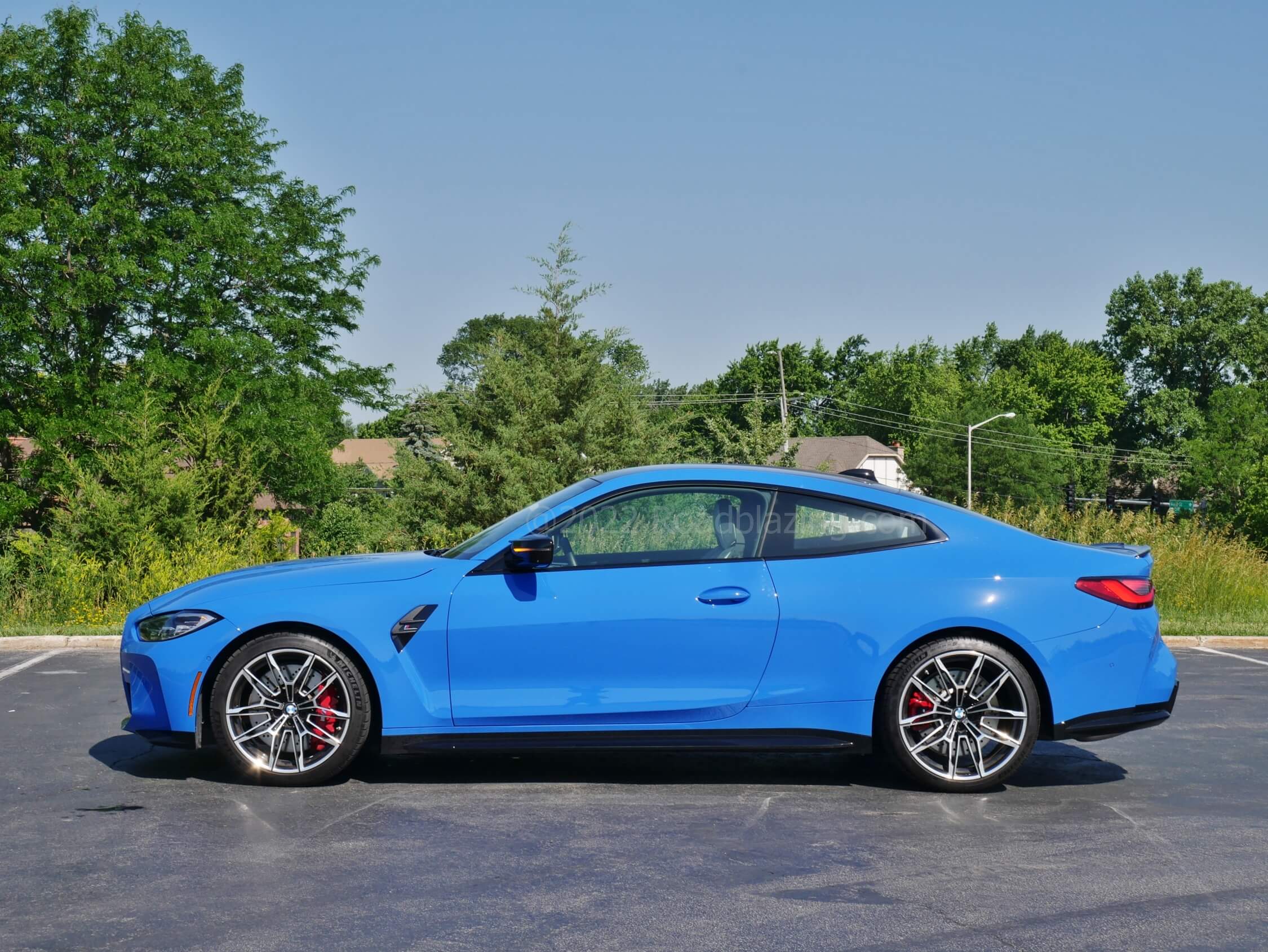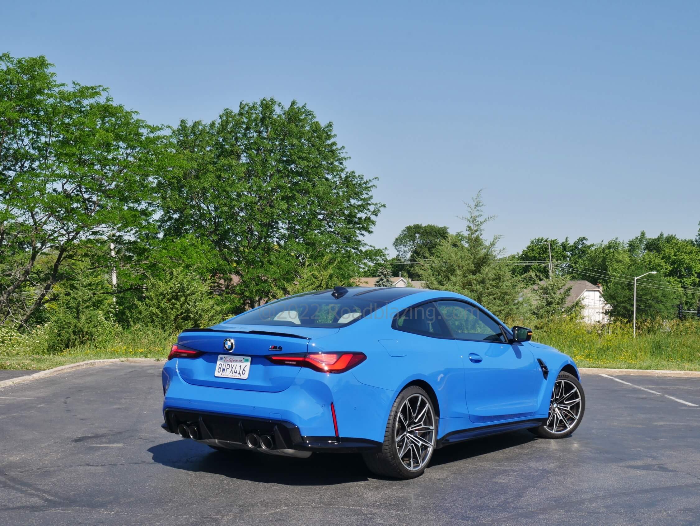 HOW MUCH: $95,845 = as tested 2022 BMW M4 Competition xDrive suggested retail price (includes $4500 Santorini Blue BMW Individual color and one day track instruction at BMW Performance Center).
