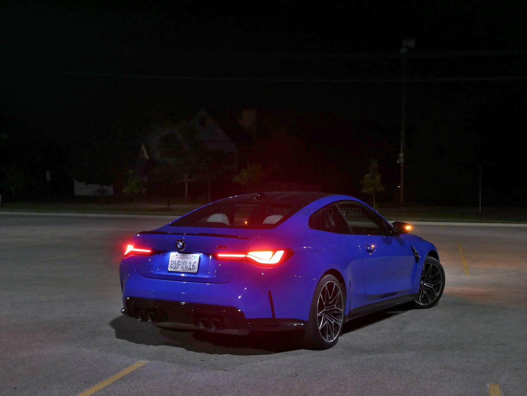 2022 BMW M4 Competition xDrive: Santorini Blue illuminating the night