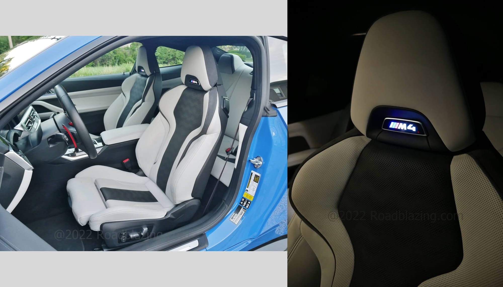 2022 BMW M4 Competition xDrive: two-tone leather +microsuede cabin + sport front thrones