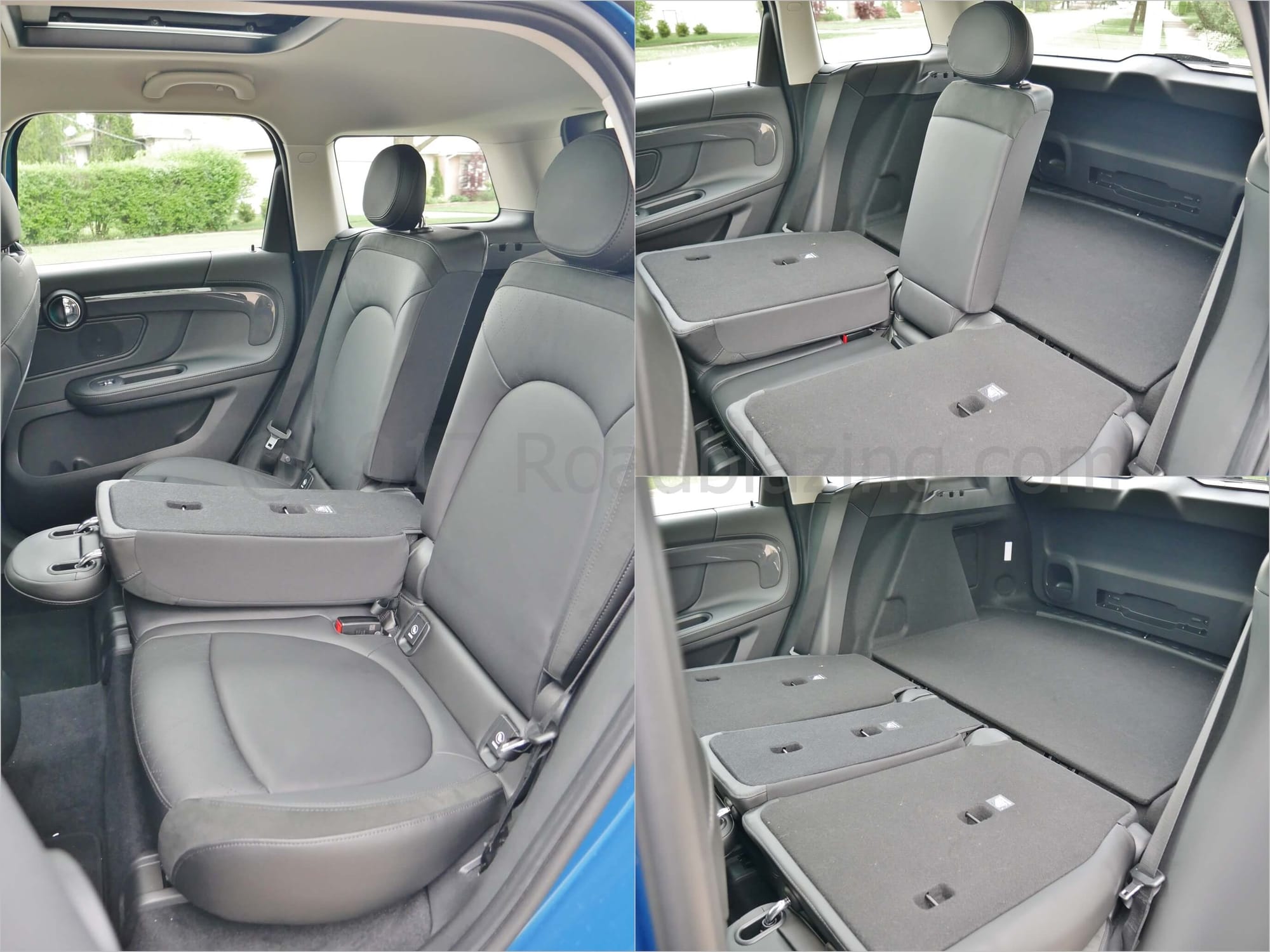 HOW BIG/ LITTLE: √ Switch from dual 2nd Row buckets to 3-place split bench w/ 3.3" legroom > previous R60 = 5 adult occupants; -1 Rear seat cushion dips, forcing knees up; back so coifs ; +1 Expanded cargo volume increases by 12%