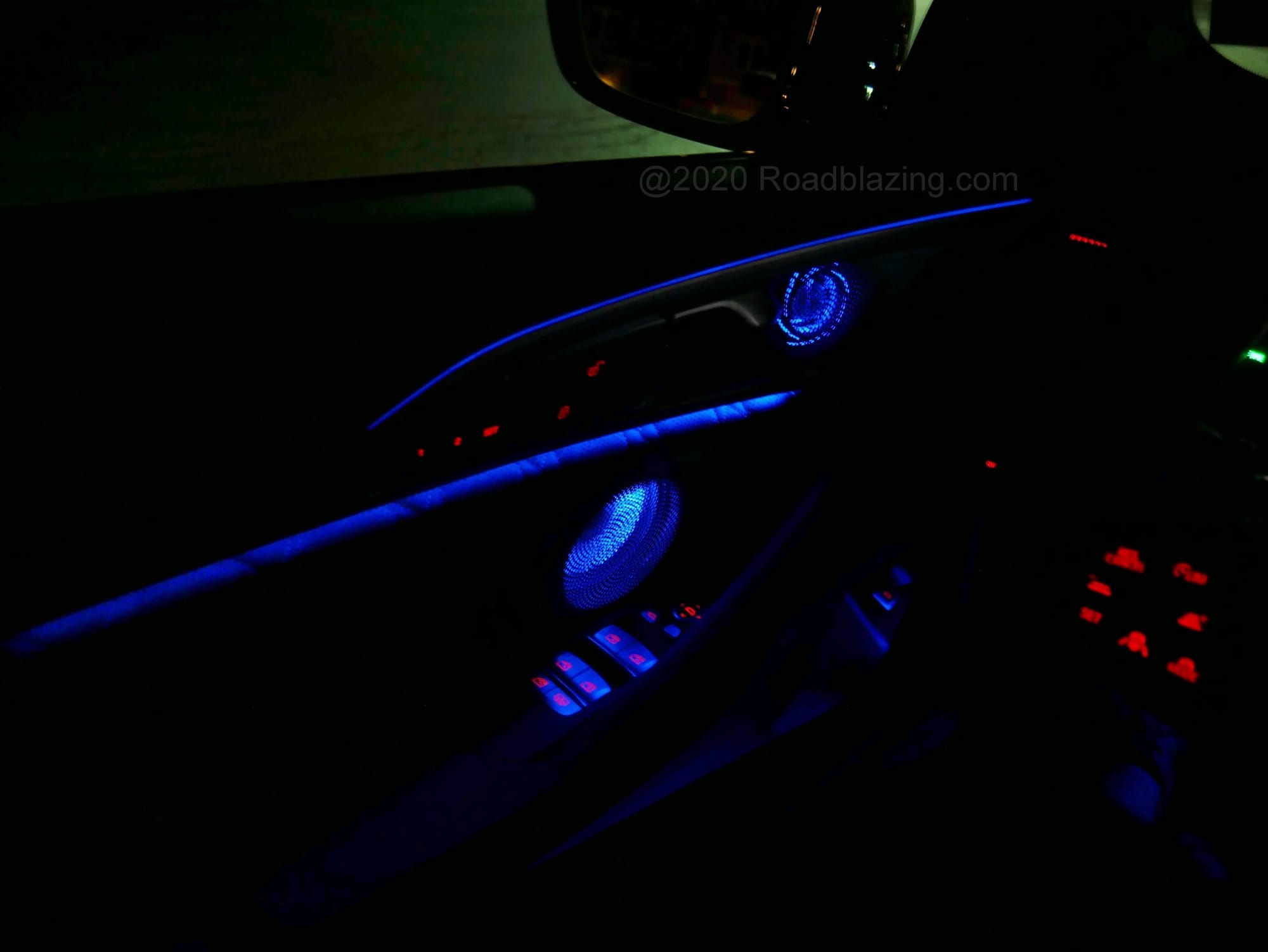 What physical switchgear there is feels robustly enjoyable. Door lock and seat memory controls are appropriately grouped on the door panels. Surface graining does its best to be authentic with seams so uniform. Dense pile carpets and thick padded sueded upper surface coverings make for impressive sound deadening.