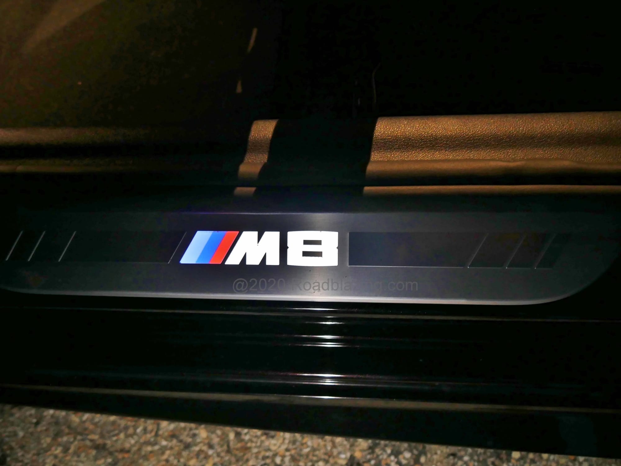 Details Done Right: ♦ Brushed stainless steel inlays, switchgear, speaker covers; ♦ Carbon fiber center console panels; ♦ Full exposed soft material surfaces; ♦ Contrast paneled cross stitched, quilted Merino leather seating & upper door panels; ♦ Contrasting seam stitched dark leather dash-top; ♦ Sueded covered pillars, rear deck, headliner; ♦ Full dashboard & door panel ambient LEDs; ♦ Dense pile cabin, transmission tunnel & cargo area carpeting; ♦ Illuminated twin- kidney; ♦ "M8" illuminated rocker panel emblems.