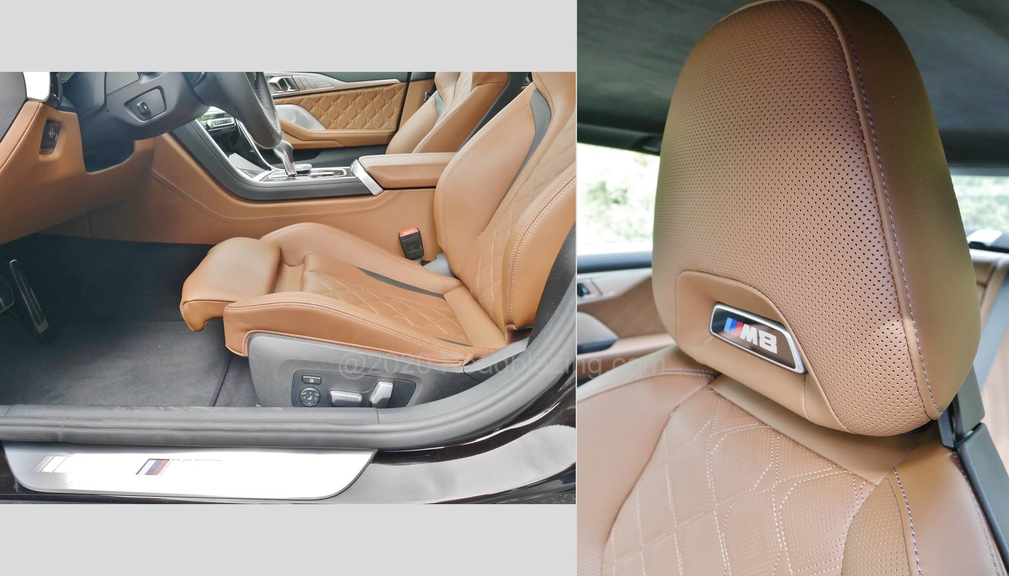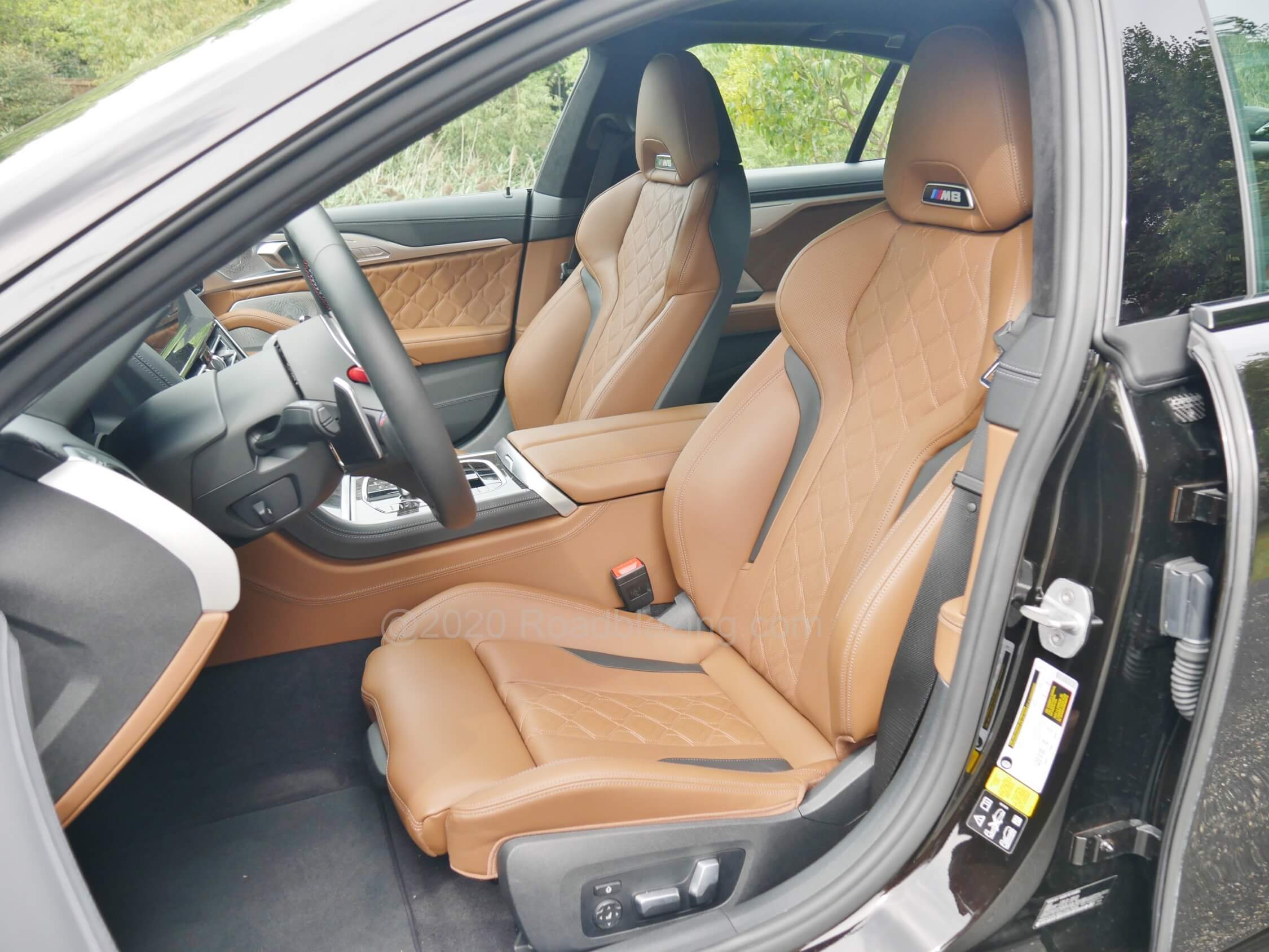 2020 BMW M8 Gran Coupe: saddle split quilted Merino leather, driver's 20-way power adjusting, heated seats x 4, cooled first row