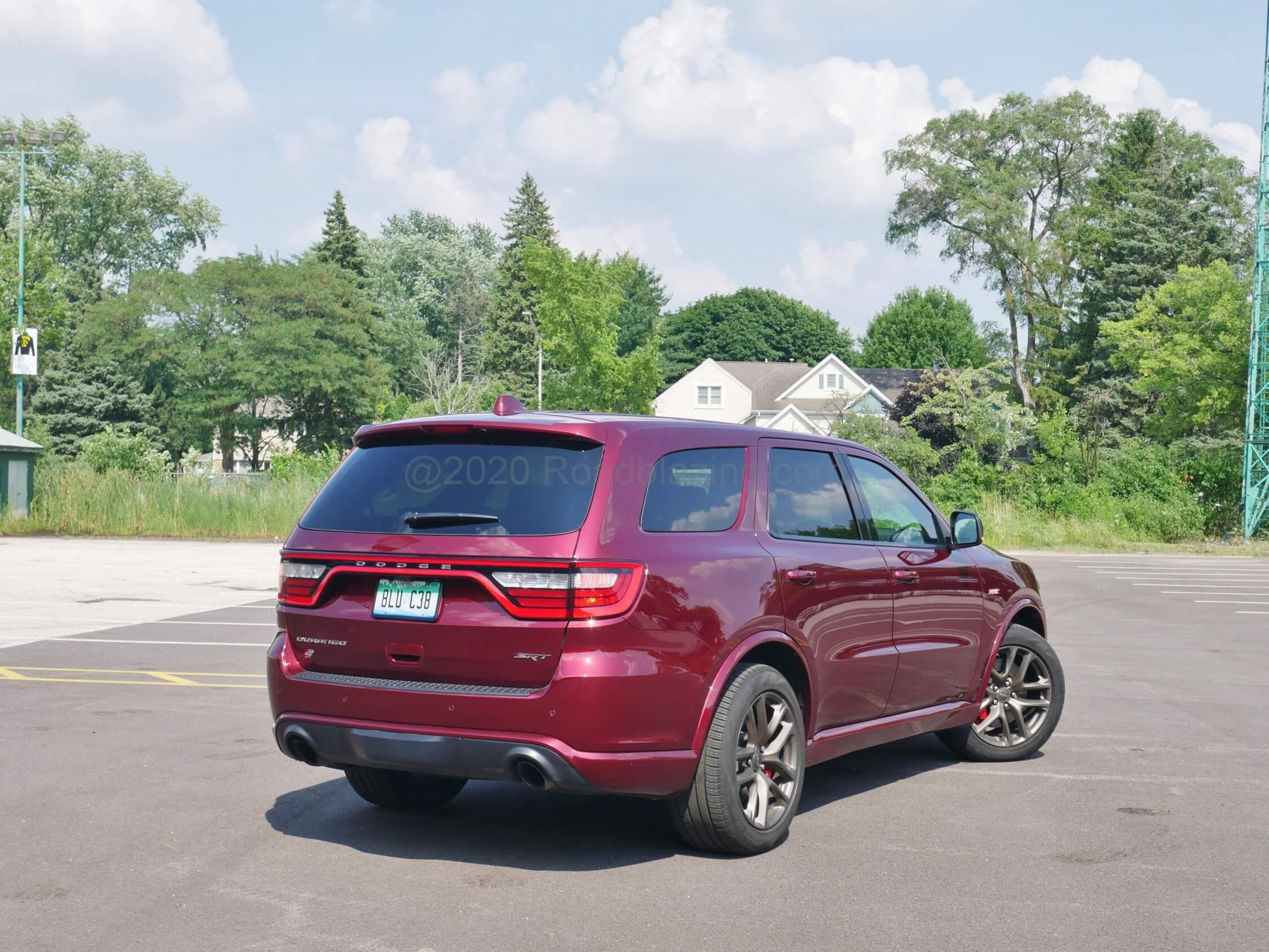 2020 Dodge Durango SRT 392: a Charger of an SUV if there ever was one, muscled up with darkened accents for rear view mirror menace effect, in Octane Red