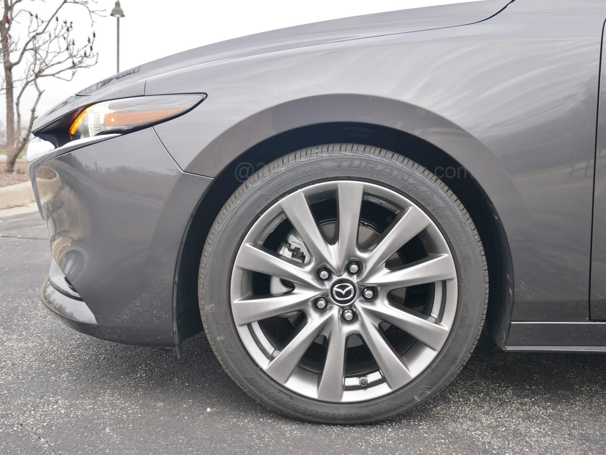2019 Mazda 3 Sedan AWD Premium: handsome, fluid fastback profile, elegance in the details, in Machine Grey Metallic