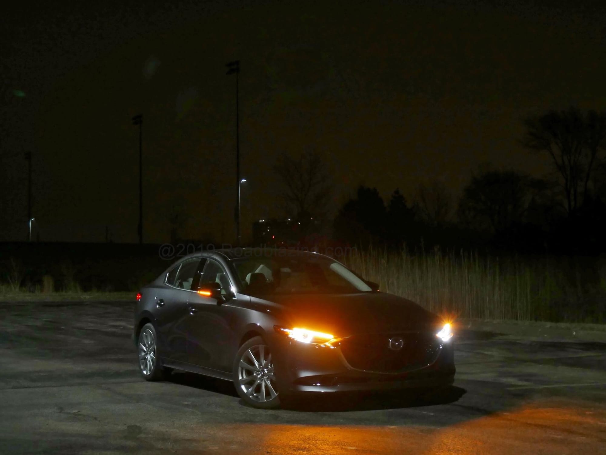 2020 Mazda 3 Sedan AWD Premium: night time in Machine Grey Metallic