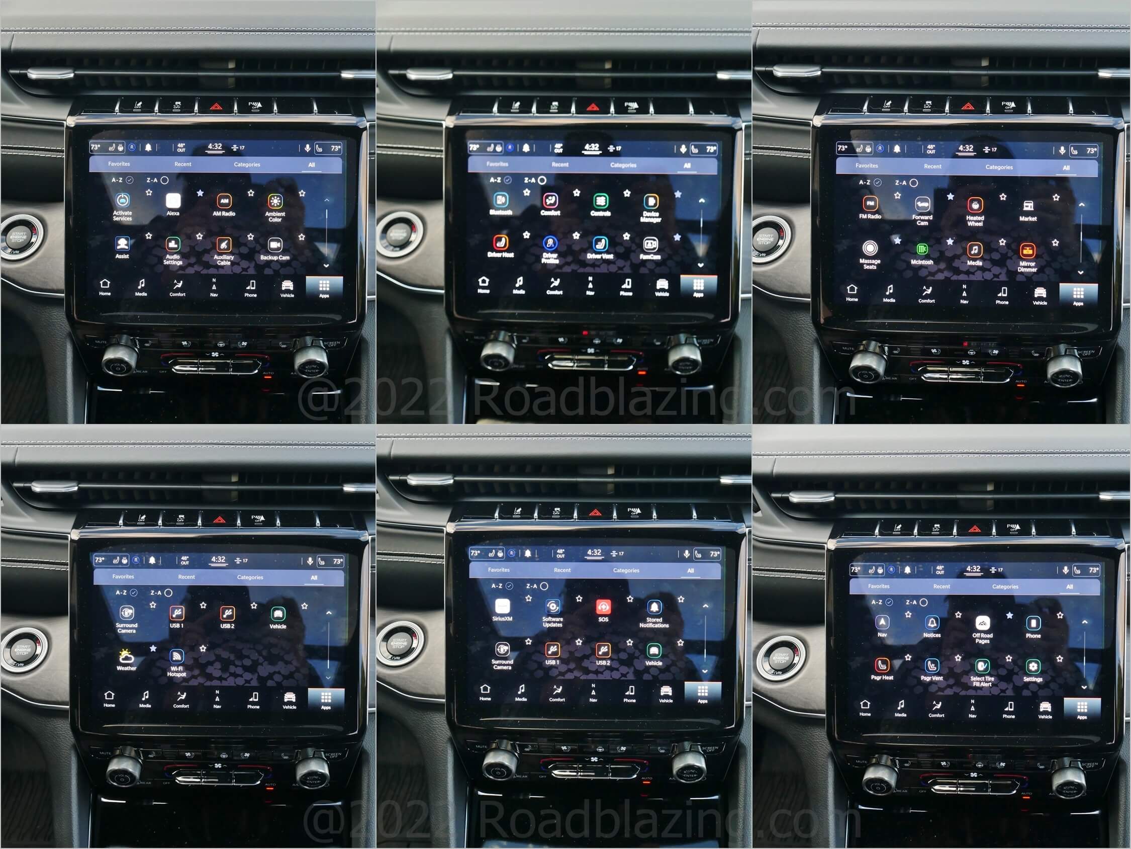 √ UConnect 5.0 center dash embedded 10.1"-inch capacitive touch LCD tri-pane landscape infotainment screen; √ Bluetooth & voice command hands-free communications; √ GPS HDD Navigation w/ 3-D map, voice guidance + Map in Digital Instrument Cluster; √ voice to text SMS messaging; √ USB-A x 6, USB-C x 6 (4 total each per row); 12V x 4 (includes cargo), 115V AC x 1 (2nd Row)