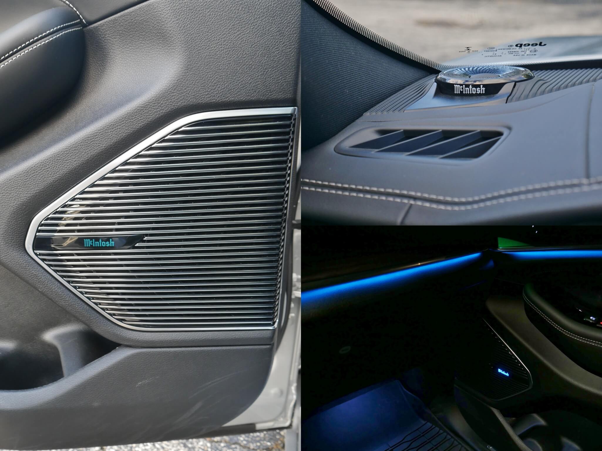 Audibly Speaking: ♦ Impeccably sibilant & tight, distortion free peak ranging McIntosh Audio (of Binghamton, New York) MX950 19 speaker (including 10.0" inch subwoofer), 950 Watt, 17 channel DTS 5.1 reference audio system w/ trademark Power Guard anti clipping and dual VU needle Blue power meters.