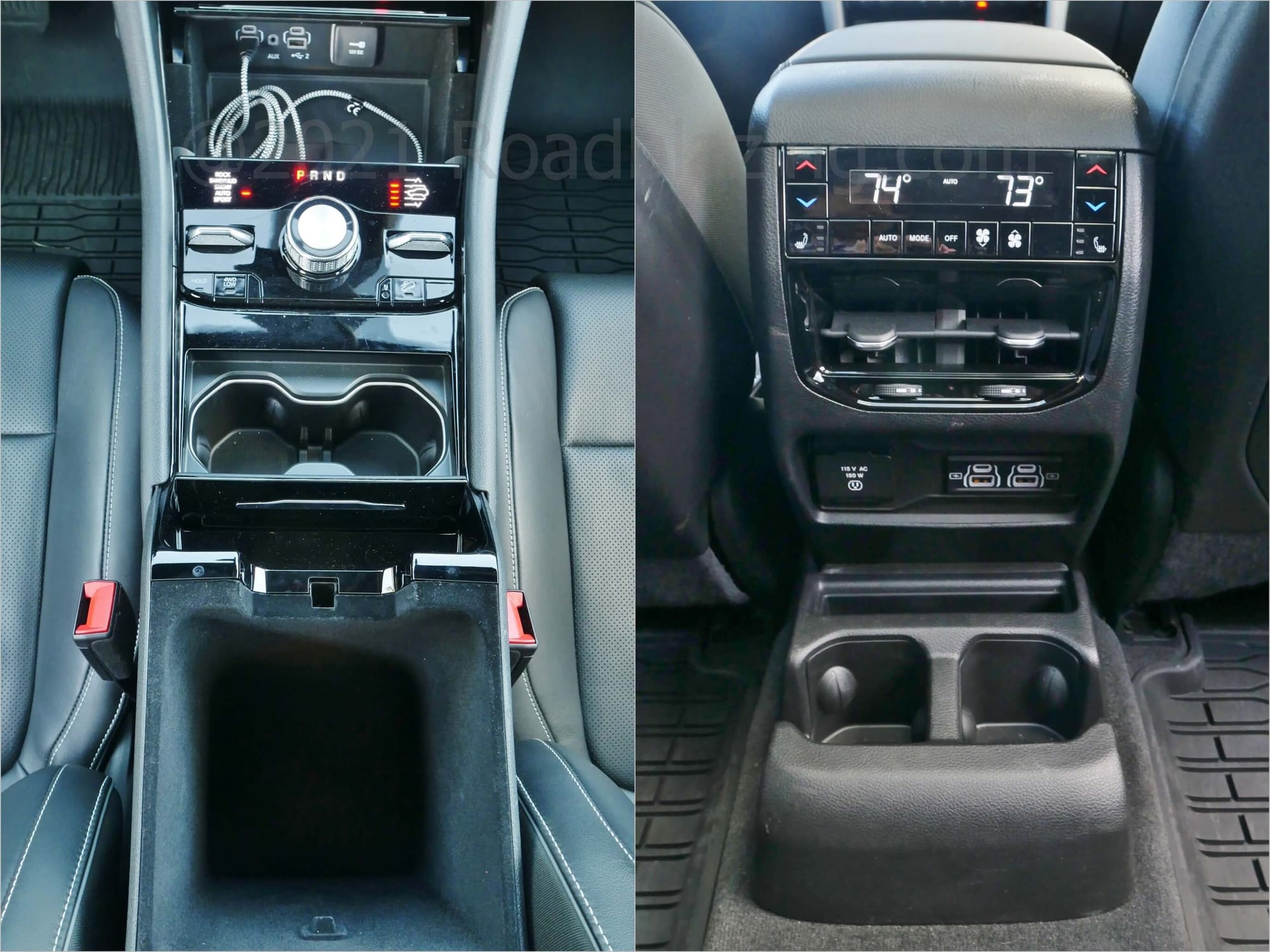 HOW USEFUL: √ Comfort approach variable height power liftgate; √ Power release flat folding + tilt & slide 2nd Row captains chairs; √ Power cabin & remote cargo bay 3rd Row split seatback fold & raise; +1 Long 1st & 2nd Row door pockets; +1 Sliding covered lower center stack mobile handset tray & connection / power ports; +1 3rd Row wall storage and outboard floor cargo management. -1 Modest front center armrest & cargo bay sub-floor storage.