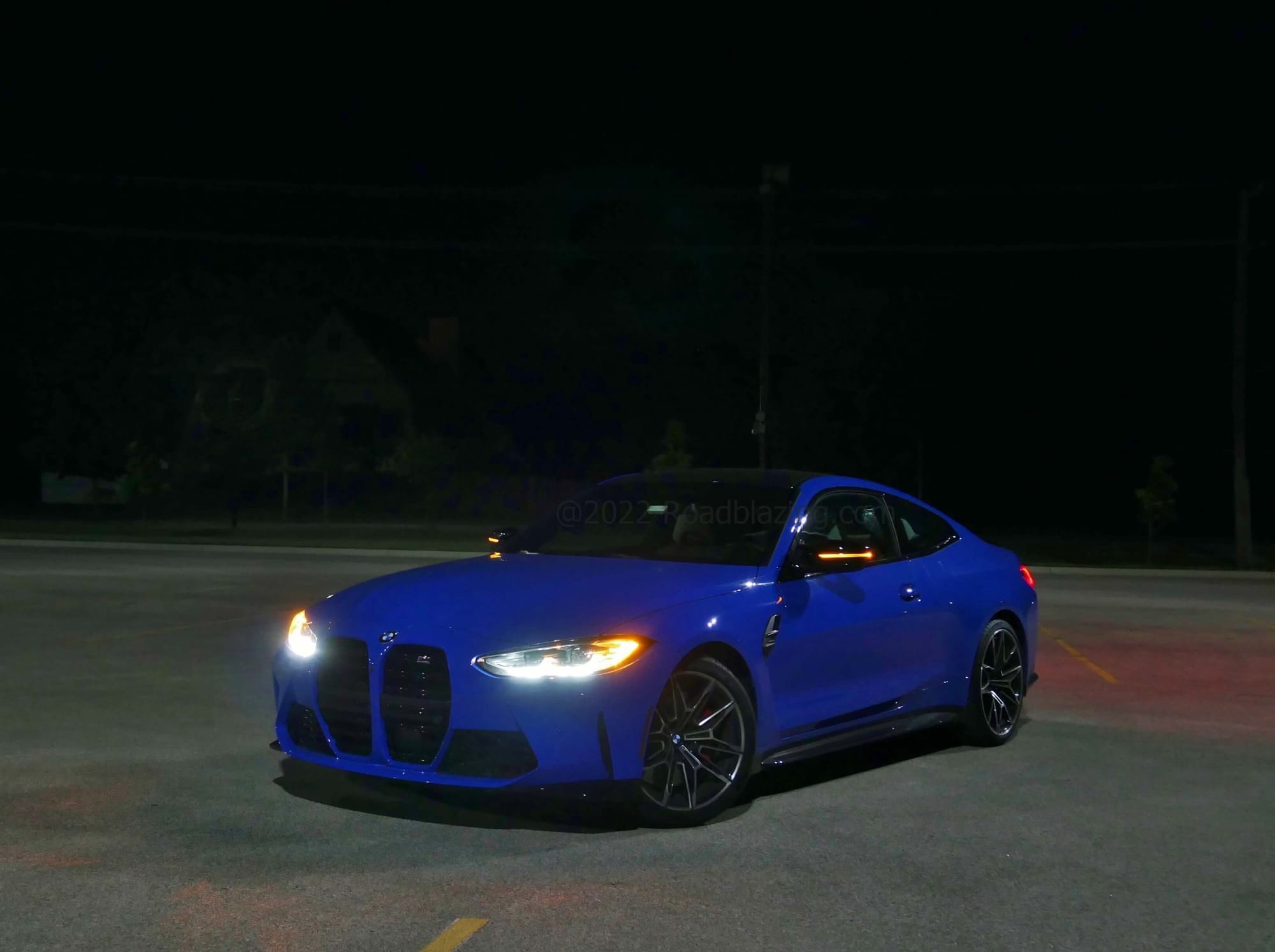 2022 BMW M4 Competition xDrive: Santorini Blue illuminating the night