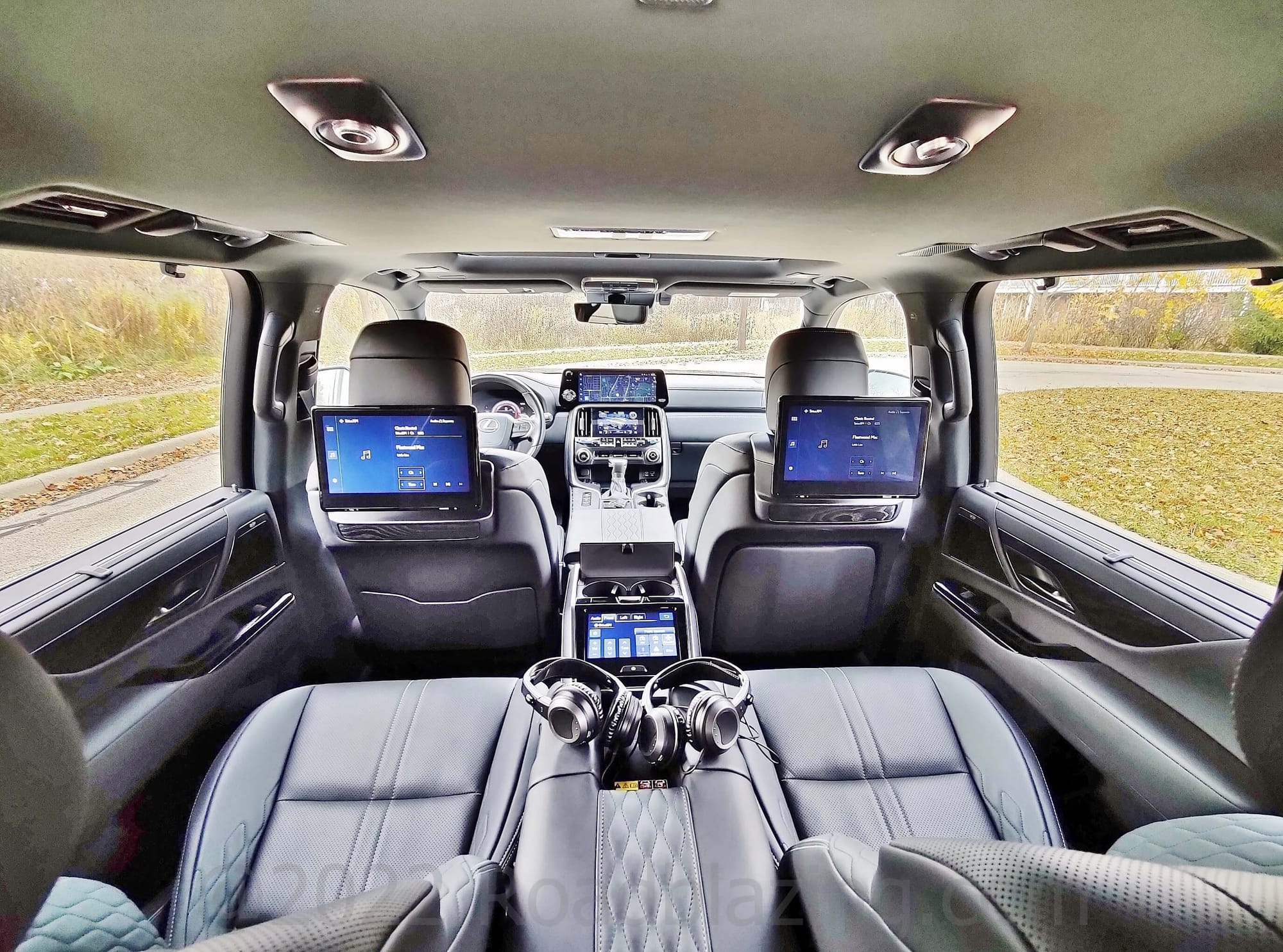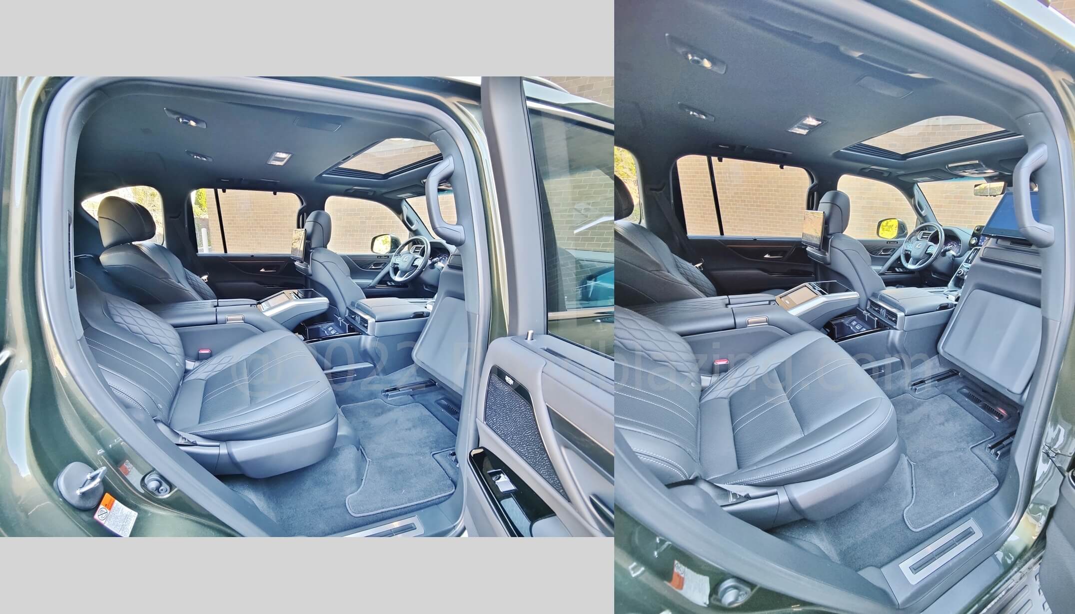 2022 Lexus LX 600 Ultra Luxury: 2nd Row dual airliner seats, right pax extended recline + front pax seat forward w/ ottoman, aft center armrest touch control screen