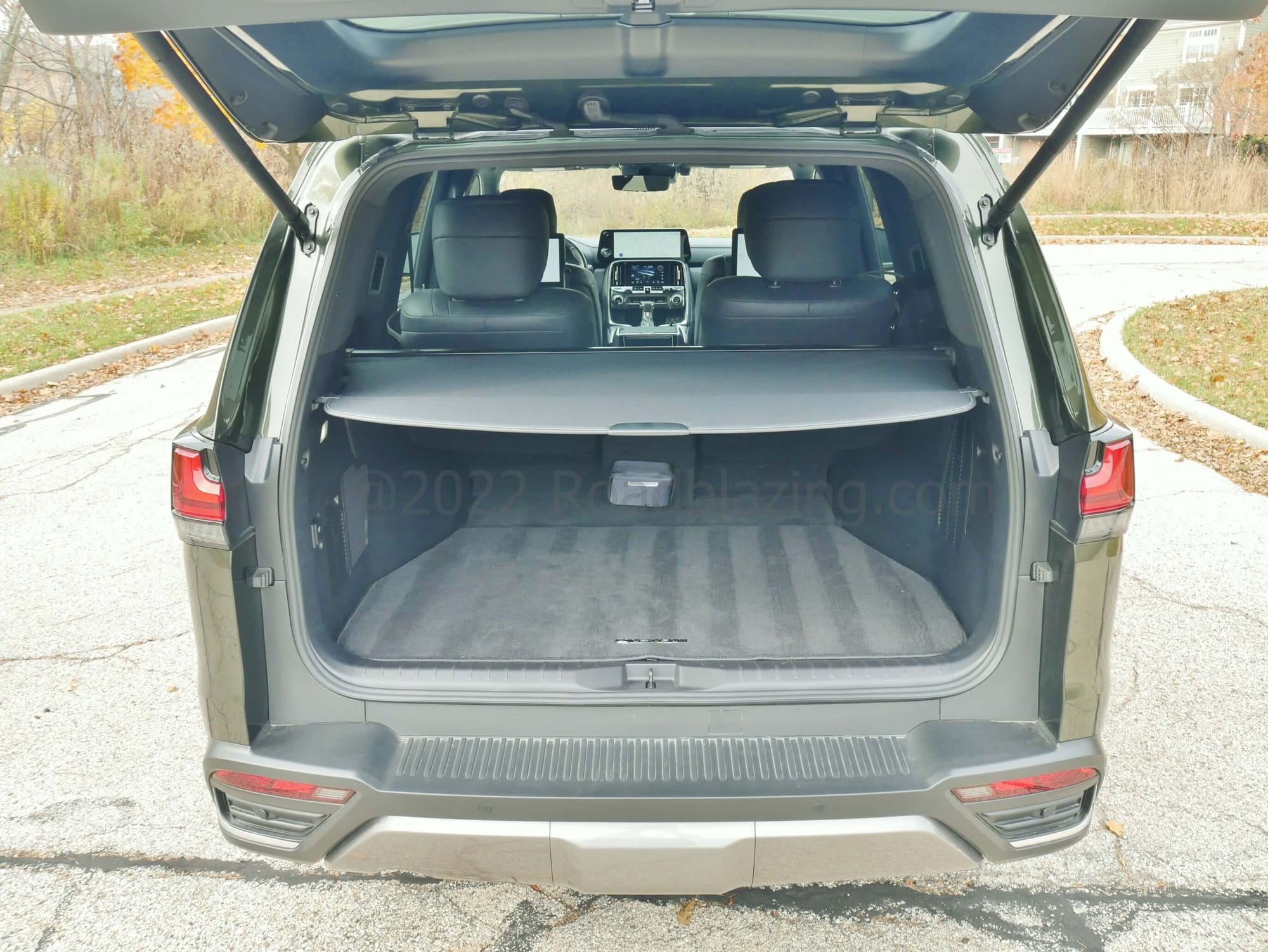 - Cargo Volume (nominal / maximum): 41.0 cubic feet = -5% / -47%* (* 2nd Row seat backs don't fold in LX 600 Ultra Luxury)
