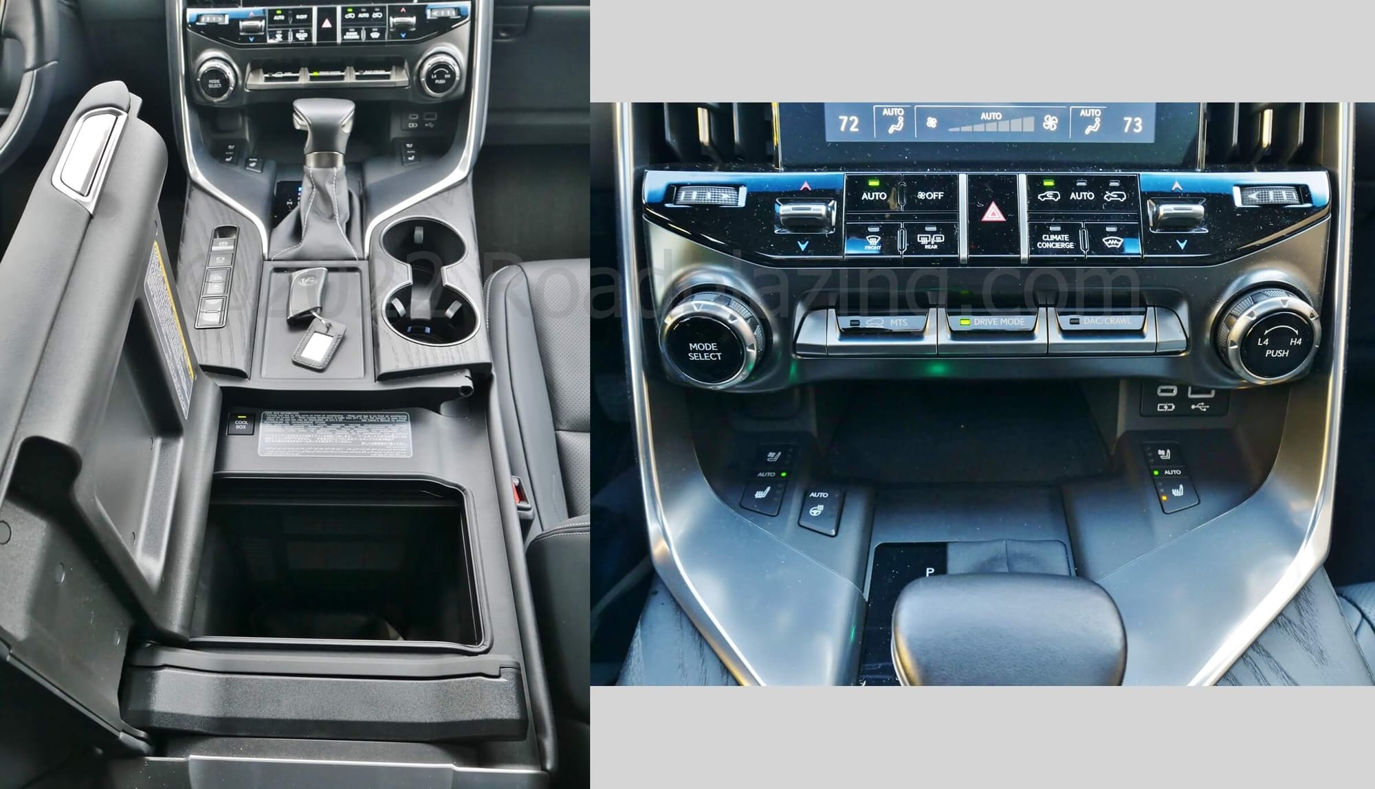 2022 Lexus LX 600 Ultra Luxury: fixed 2nd Row airline seat tub compromises cargo capacity, center console chiller bin