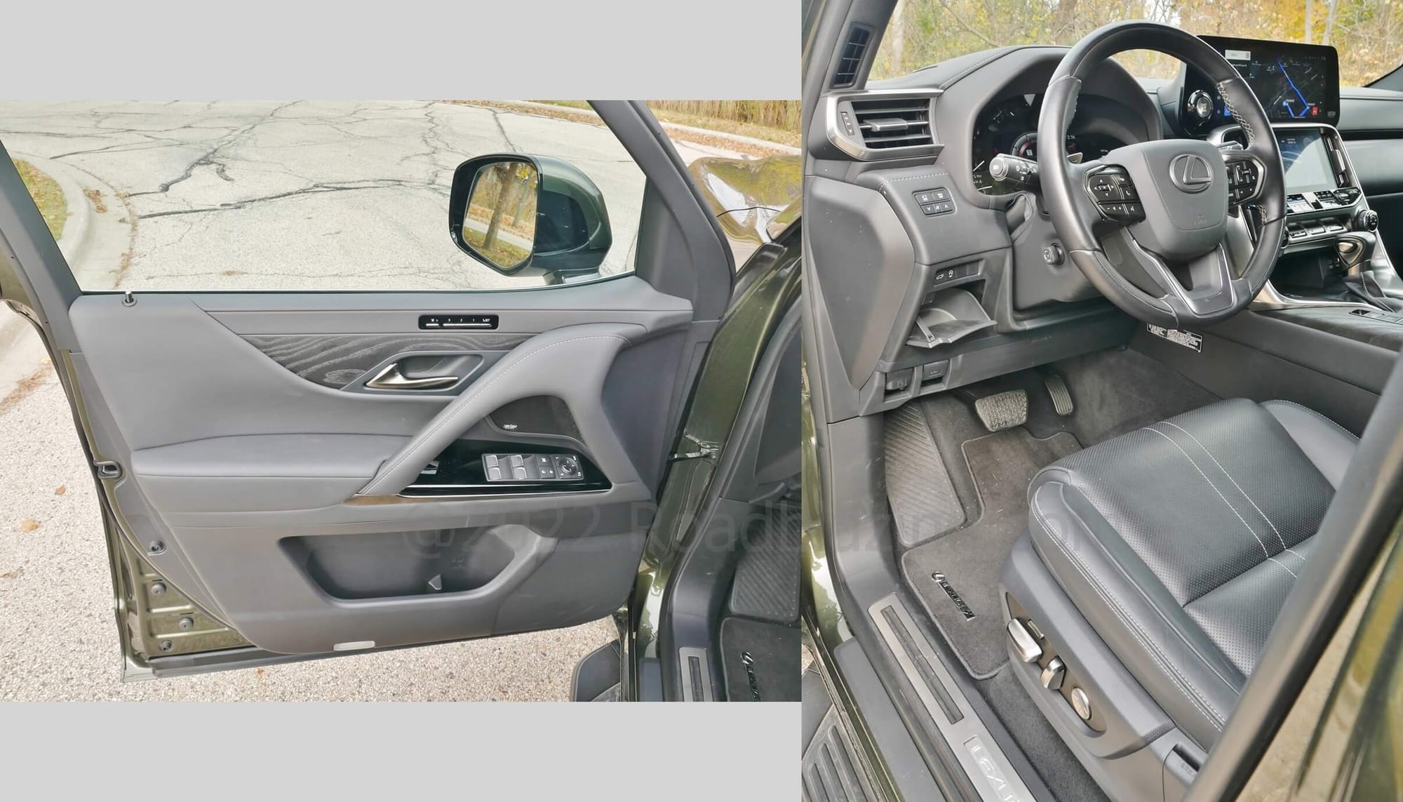 A three hundred pound aluminum alloy new Lexus LX body diet lowers the center of gravity for a reduction of nose plow upon entering bends. Available electronic dampers are capable of quick compression and slower rebound, resulting in less low frequency quaking. Electric steering assist boost errs on the side of over-boosted, requiring over-corrections in lane changes. The initial bite of the large disc brakes, fortified by twin piston front calipers, tapers off at the end of pedal travel. Cross wind buffeting is less than expected for such a Colossus, while LX 600 road, wind and powertrain noise have been better hushed.