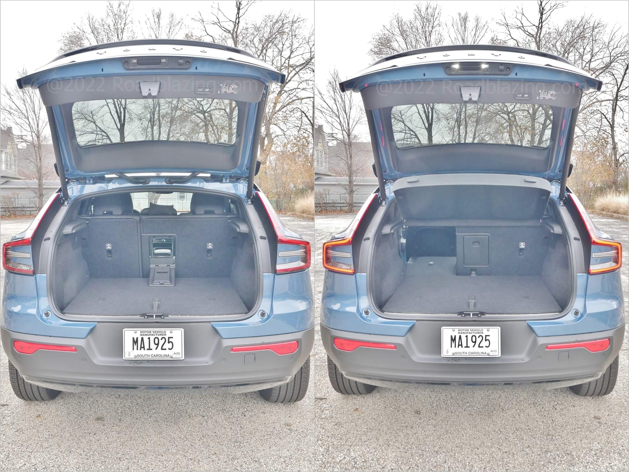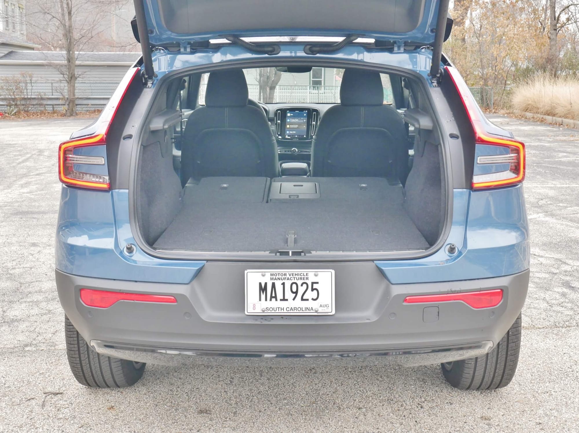 2022 Volvo C40 Recharge Twin Ultimate EV: cargo capacity drops 10% from XC40, while the carpeted "Frunk" holds a small duffel bag