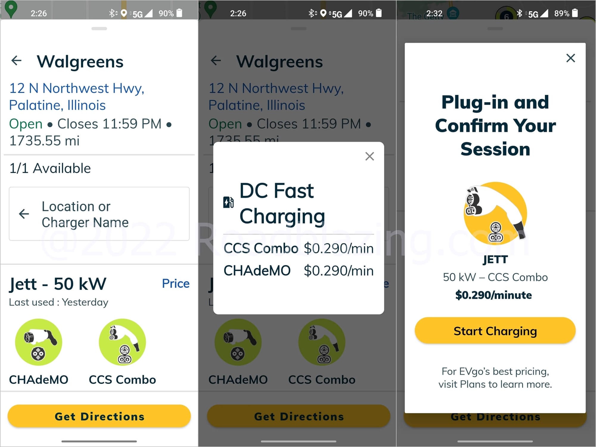 - EVGo 50 kW DC public charger, 32 kWh drawn to 94% charge status, 54 minutes session duration @ $0.29 per minute charging cost, $16.29 total session cost, 32° F ambient temperature