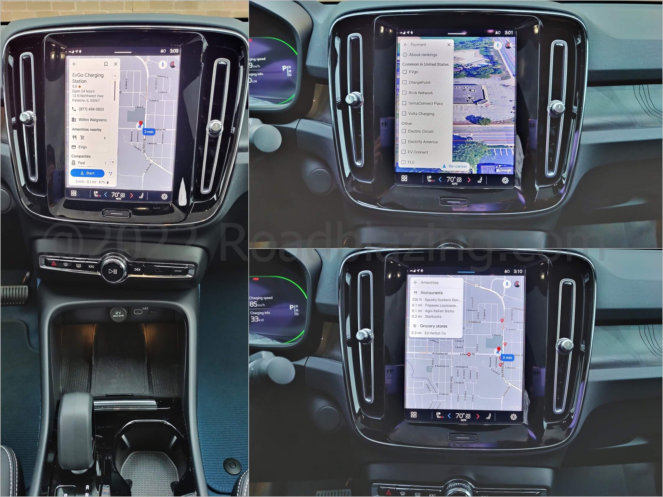 2022 Volvo C40 Recharge Twin Ultimate EV: Google Maps populating in 9.0" touch portrait media display and in 12.3" TFT instrument cluster, sparse switches, clever cabin storage