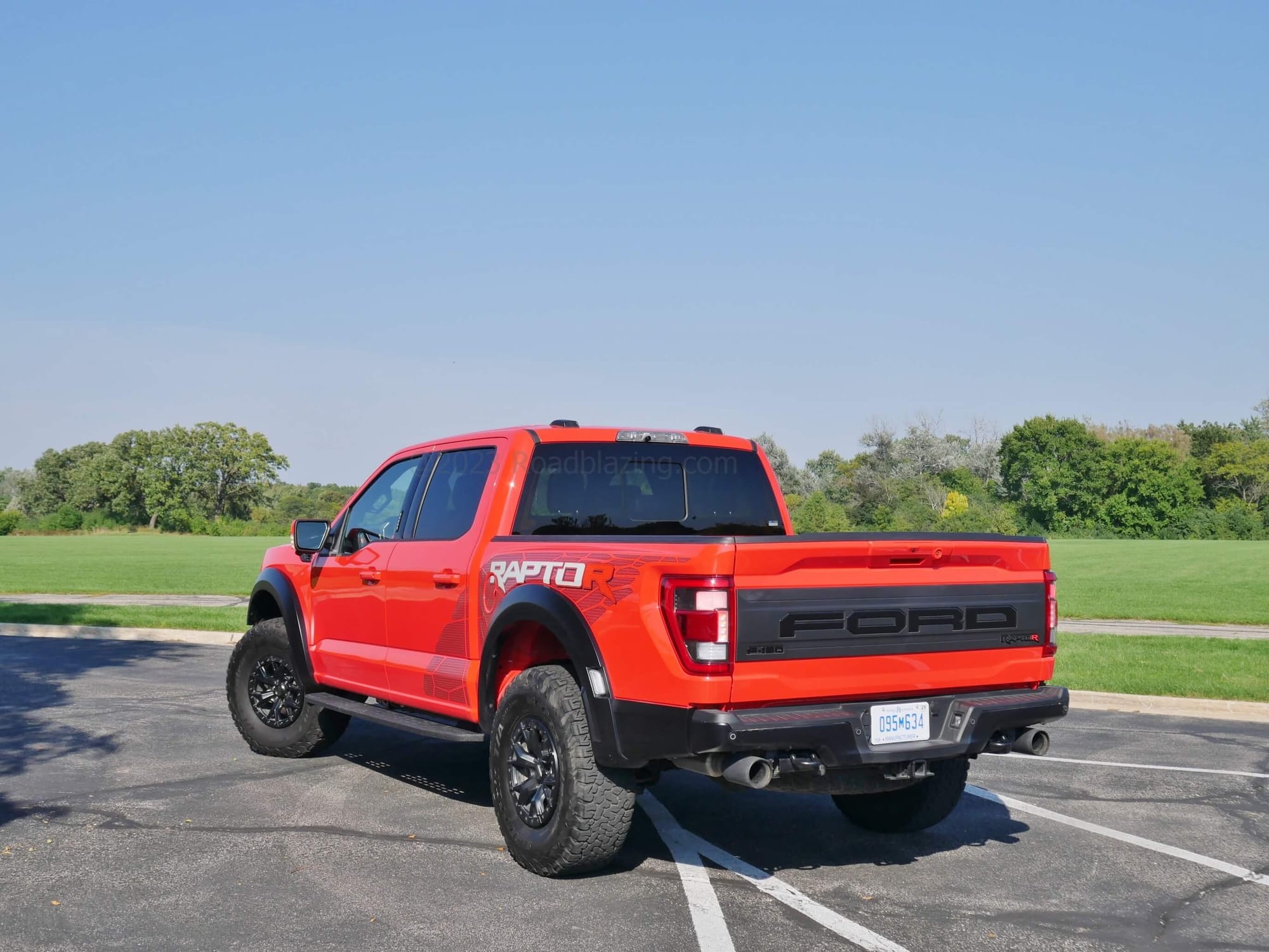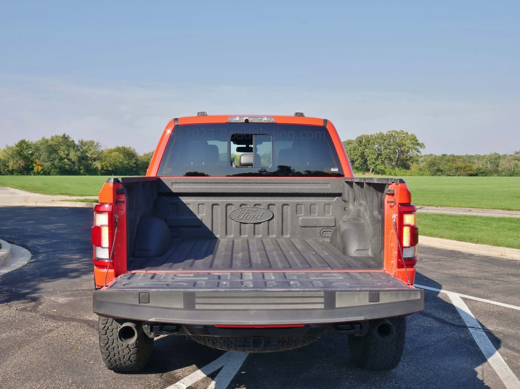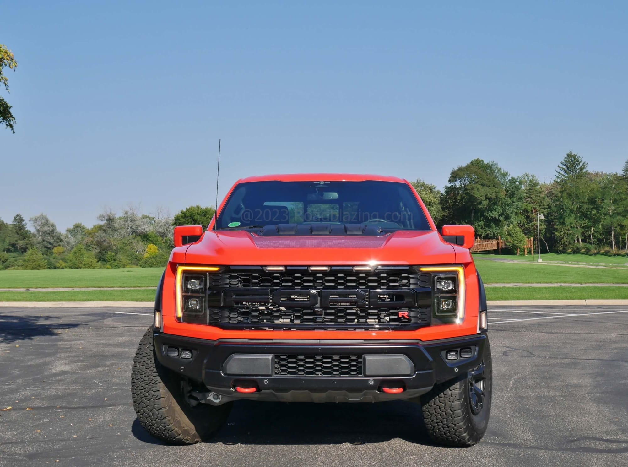 2023 Ford F-150 Raptor R 4x4: leapfrogging the Jurassic pal in Code Orange Metallic with RAPTOR bird's feathers graphics