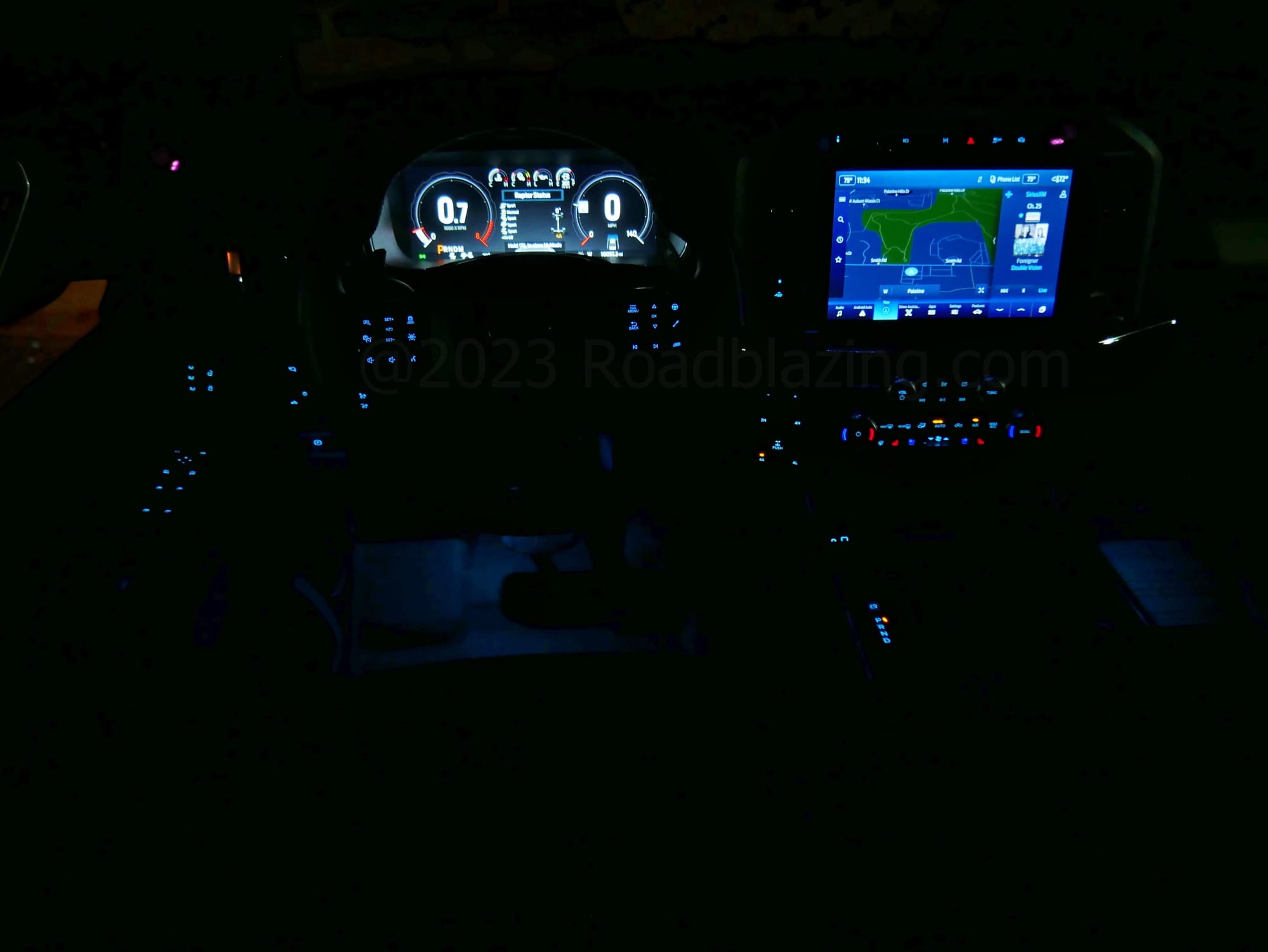 Details Done Right: √ RAPTOR embroidered upper front seat + center console bin lid; √ Red contrast stitching; √ Carbon fiber middle dasboard, door card, console appliques; √ Tight webbed headliner; √ Blue ambient cabin night illumination