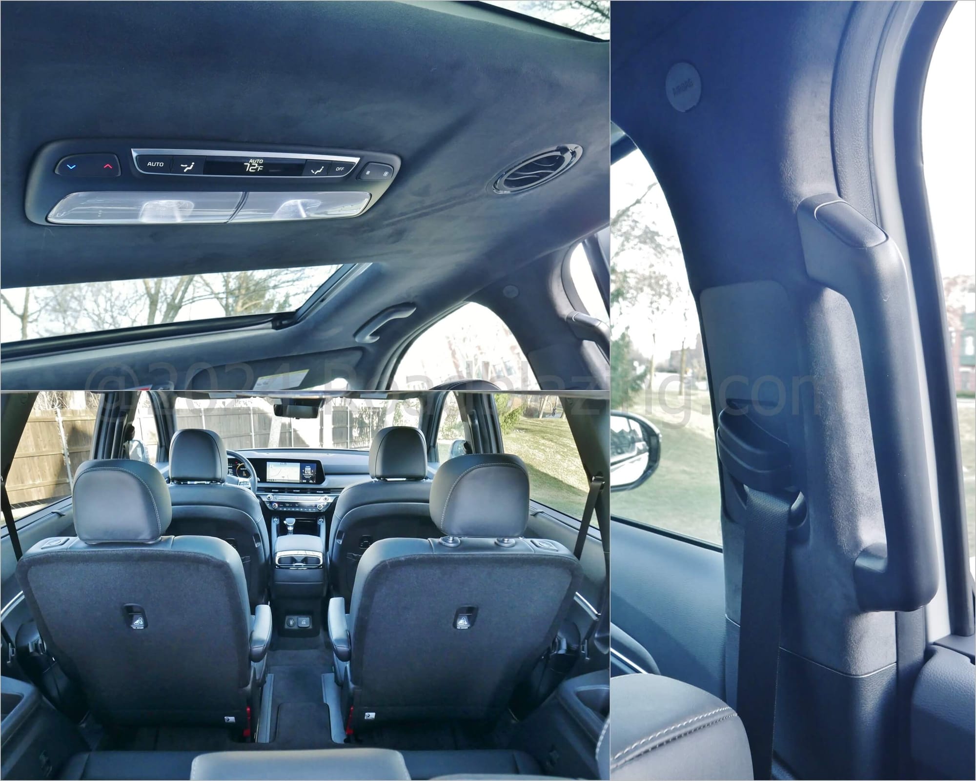 - CABIN SPACE: As large as full size family crossovers get. Normal cabin configuration is for 5 good size adults plus two of slighter build. However, as tested 2nd Row dual captain's chairs cut occupancy down by one.