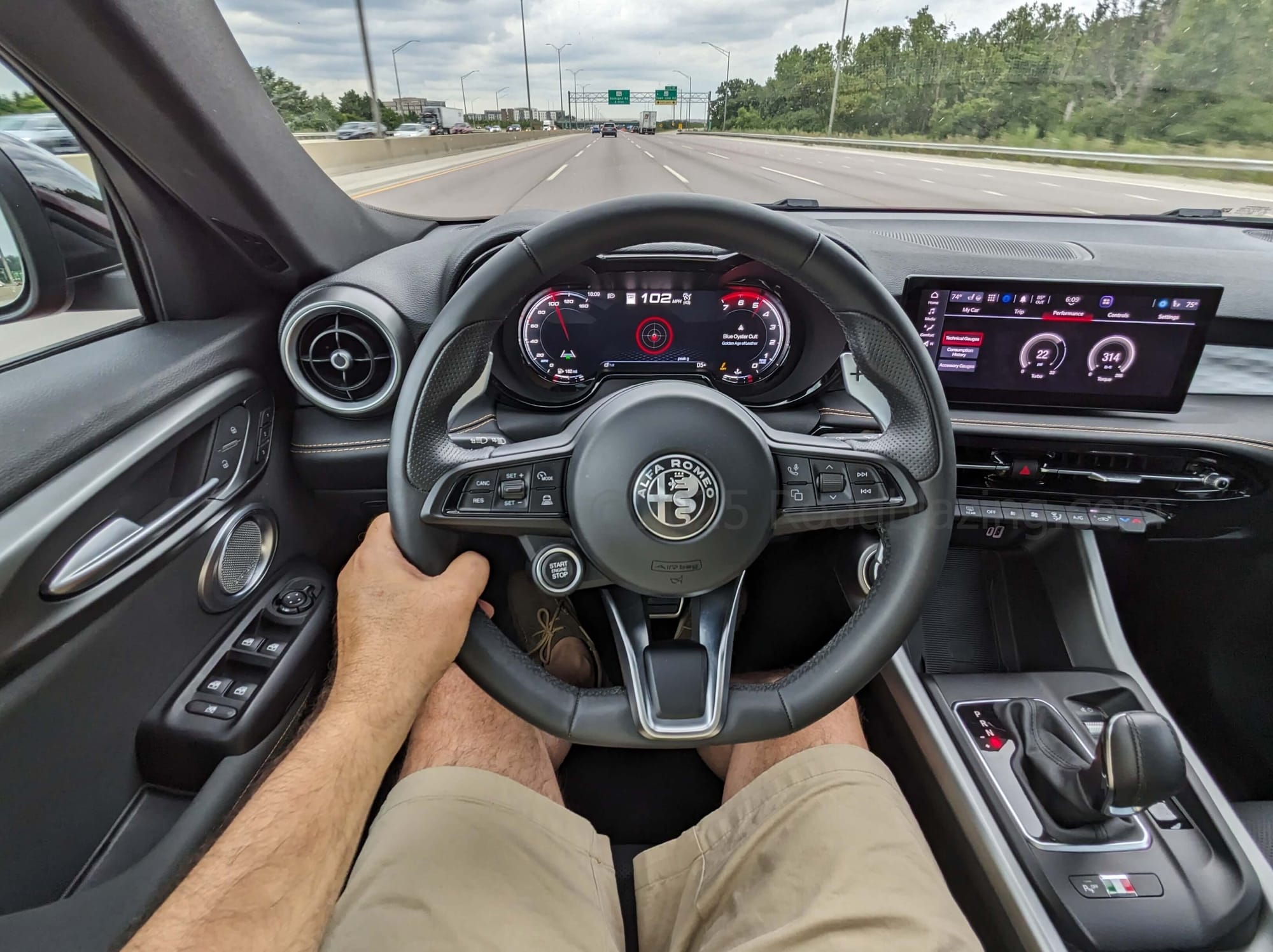 While lacking the electric torque and exhaust bark it's PHEV sibling, the 2025 Tonale Veloce all of a sudden has become a sweeter grand touring crossover with ample thrust to juke in traffic at whim. The long throttle tip-in takes some getting used to and some may find the torque converter abrupt in locking up and then releasing. But it's very good at being in the right gear for more enthusiastic maneuvers, without any observable turbo lag. And yes, it is recommended to defeat the bothersome start/ stop idle in the media display.