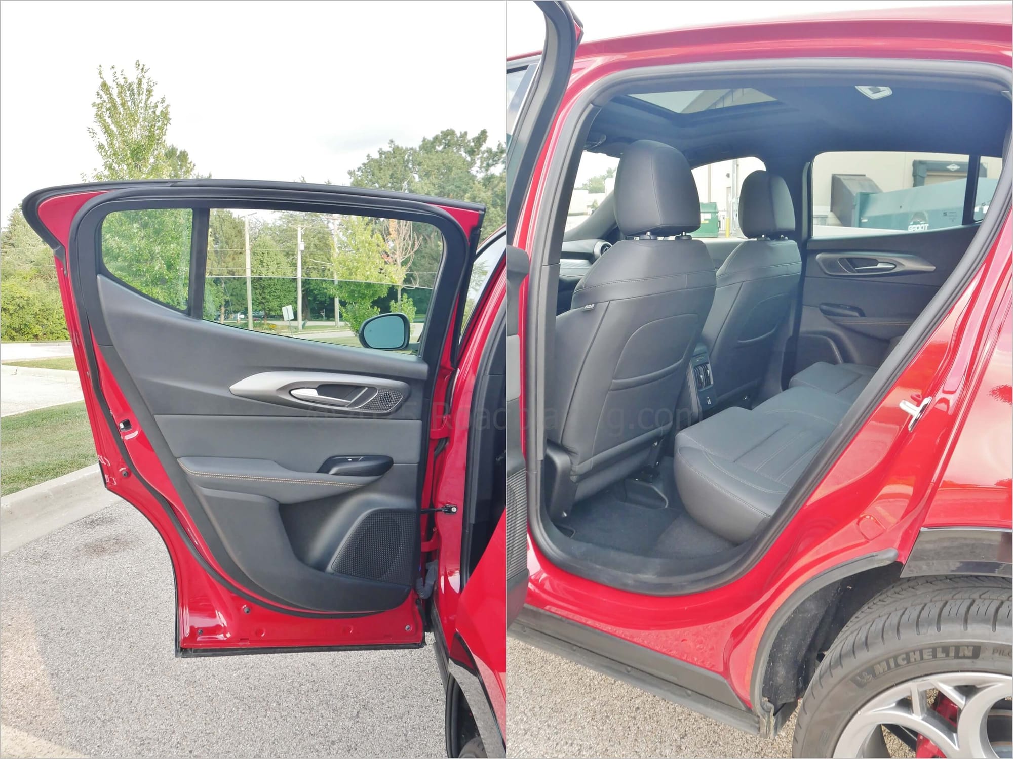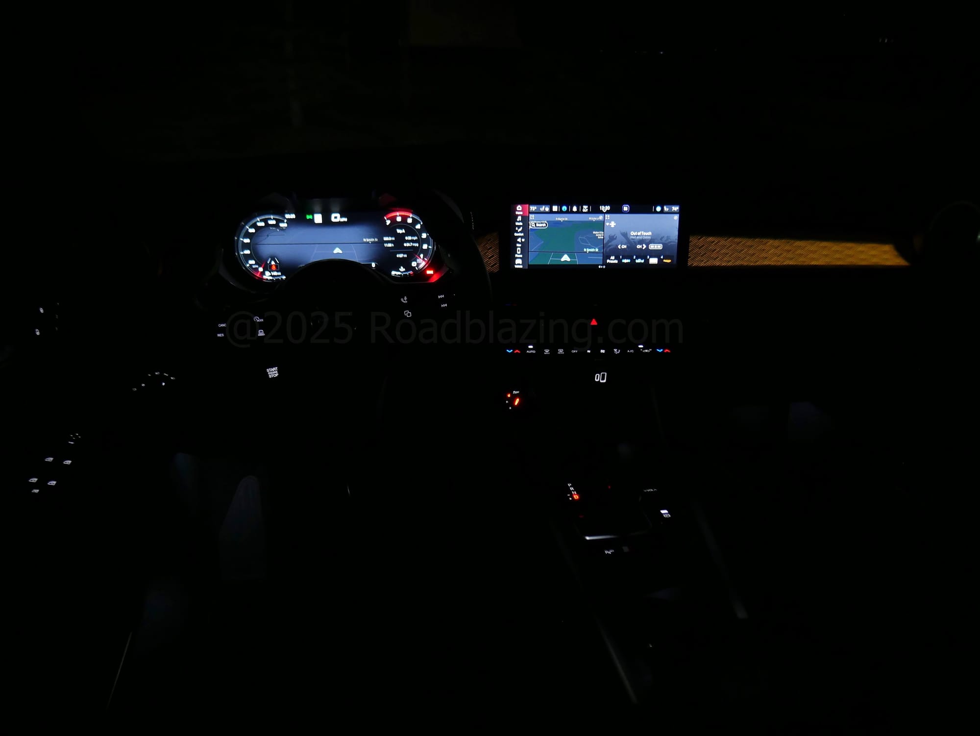 Details Done Right: √ Oversized magnesium steering column shift paddles; √ Aluminum pedal covers; √ Knurled aluminum climate duct registers & center console audio volume barrel; √ Dense pile carpet; √ Tight mesh headliner + upper cabin pillars; √ Matte black center console bezel; √ Tucked seam smooth leatherette soft mid dash and upper door panels; √ Tandem red contrast stitching.