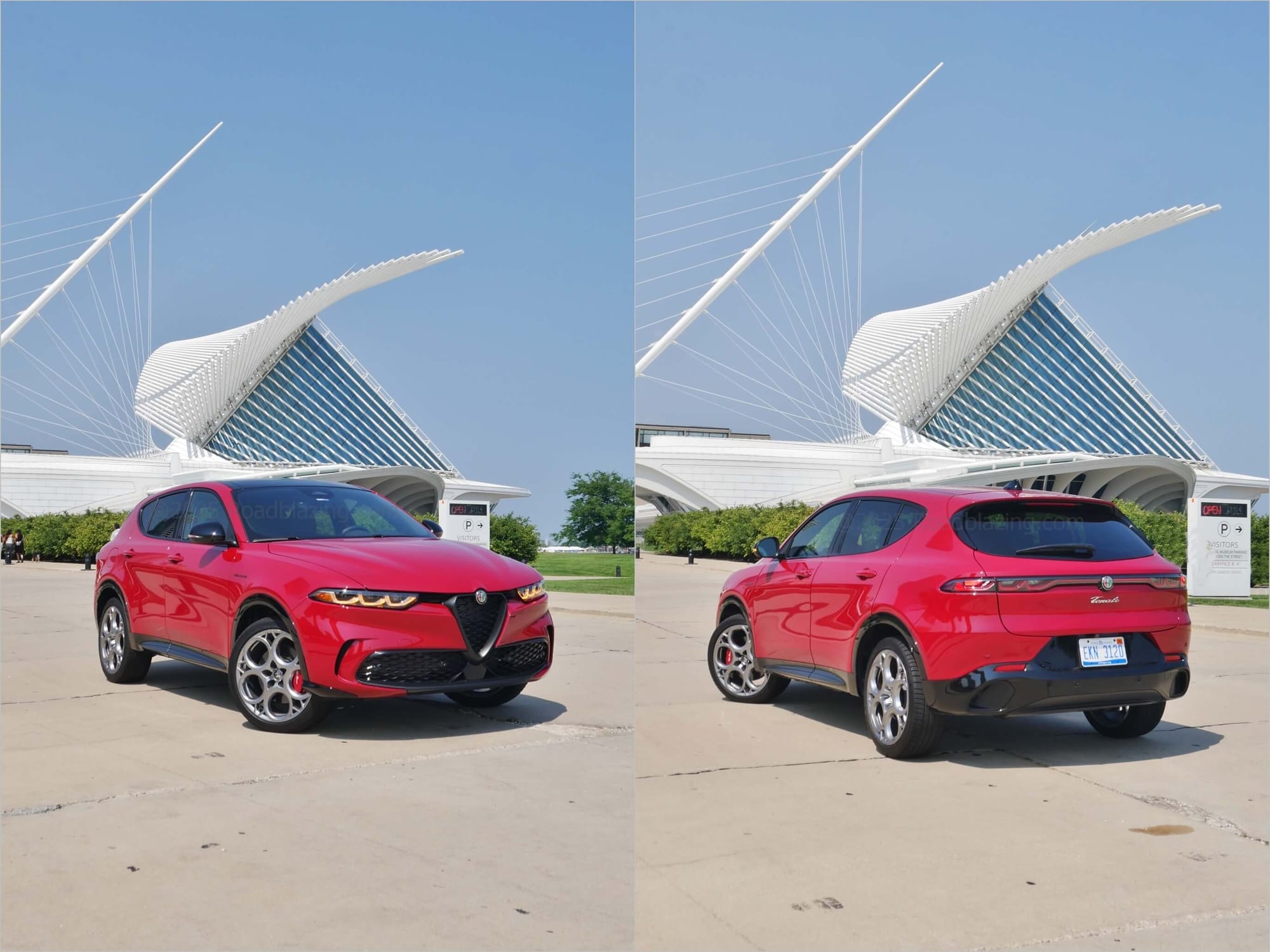 Presumably, the 2025 Alfa Romeo Tonale is supposed to be the emotional alternative to the all-business Dodge Hornet. However, distintive exterior Latin flair is limited to the inverted triangle center grille, cross & green serpent badging, segmented headlighting, , and the color & wheel options. Thus, the Tonale lacks the panache of the bigger Stelvio brother.
