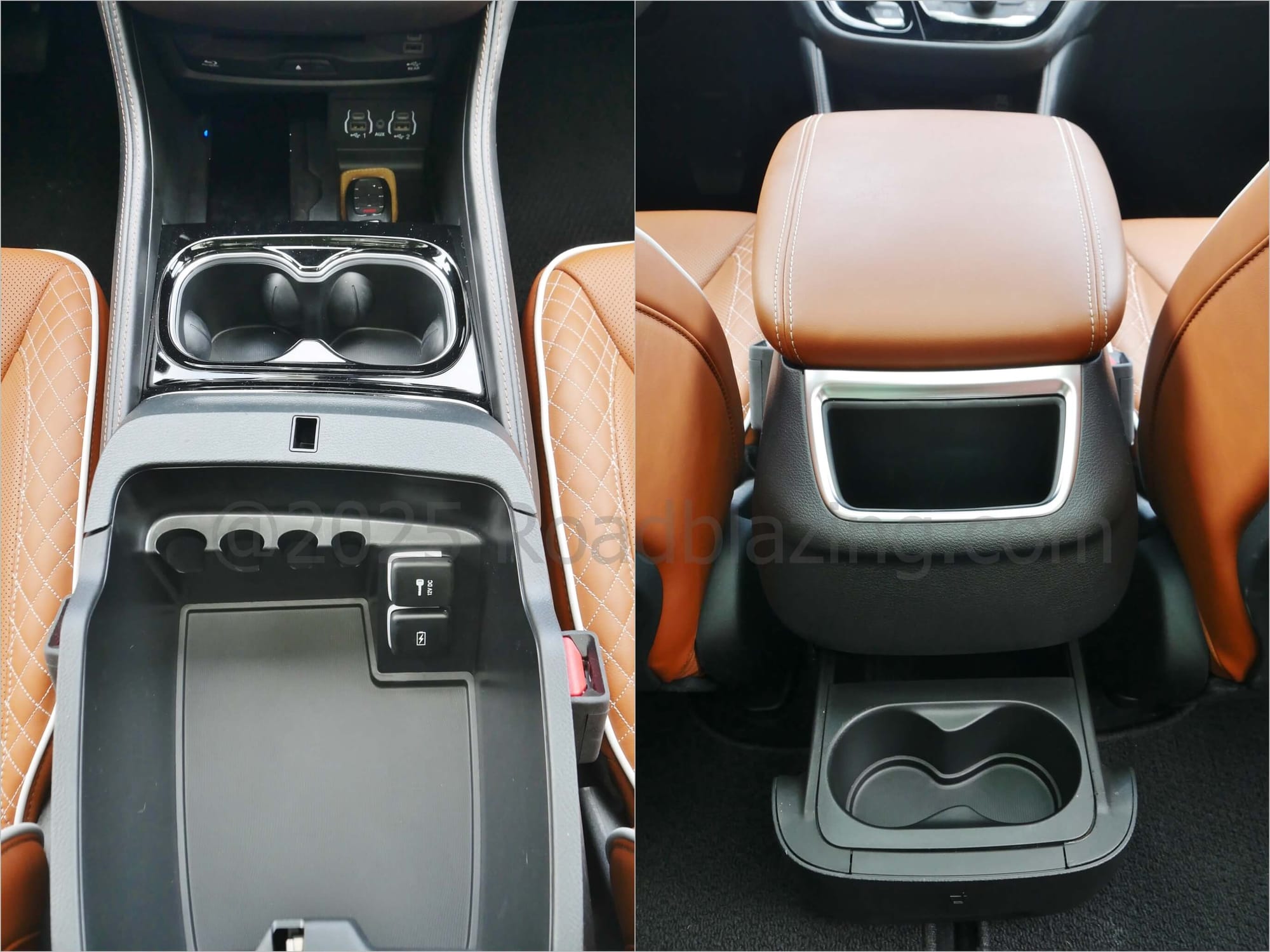 HOW USEFUL: √ Floating center console w/ sub storage ; √ Flat folding 2nd Row tilting seatbacks, latch releases; √ Flat folding 50/50% split 3rd Row tilting seats w/ twin release straps; √ Slide out aft front center console 2nd Row cupholder tray; √ Remote dual power sliding 2nd Row doors; √ Cupholders x 6; √ Door bottle holders x 3