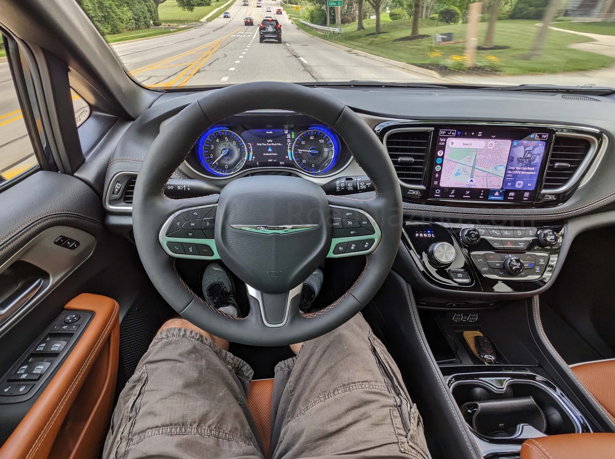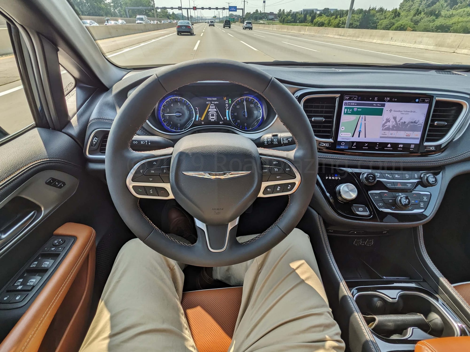 However, the in-house nine speed automatic transaxle is inclined to make a bee line for the upper overdrive ratios, and there is no sport mode or manumatic gear selection. Thus, in an urgent application of the throttle the Pacifica Pinnacle is challenged to get out of the way of its own sub 2.5 ton weight. The real paradox, then, is that the digital instrument cluster can display all sorts of engine performance data.