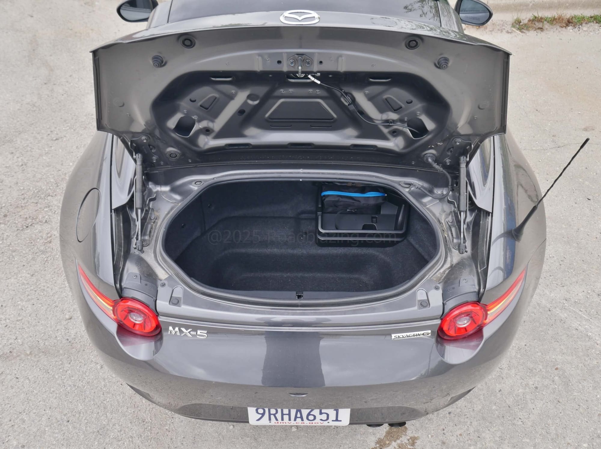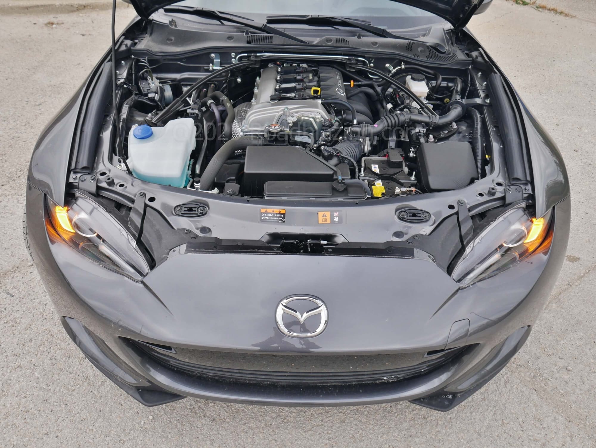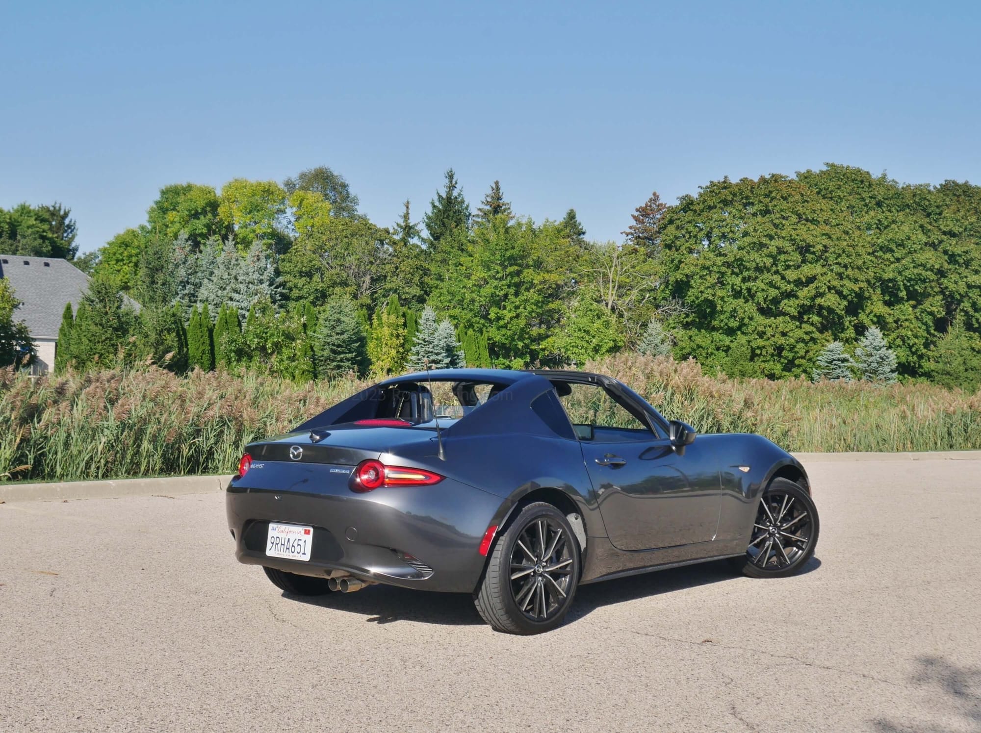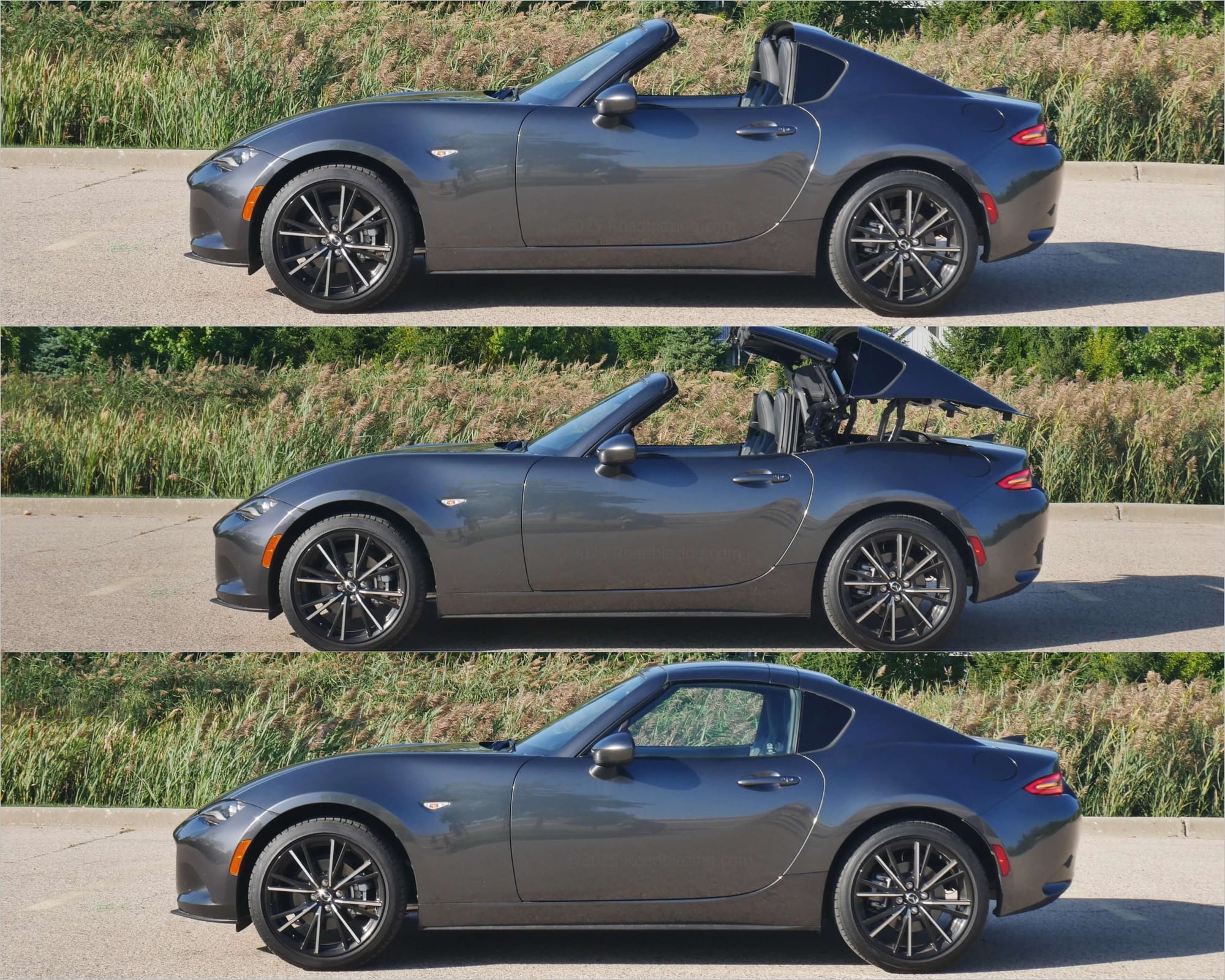 2025 Mazda MX-5 Miata Grand Touring RF: it takes just 13 seconds to operate the retractable hard top in this Machine Gray Metallic sports cabrio