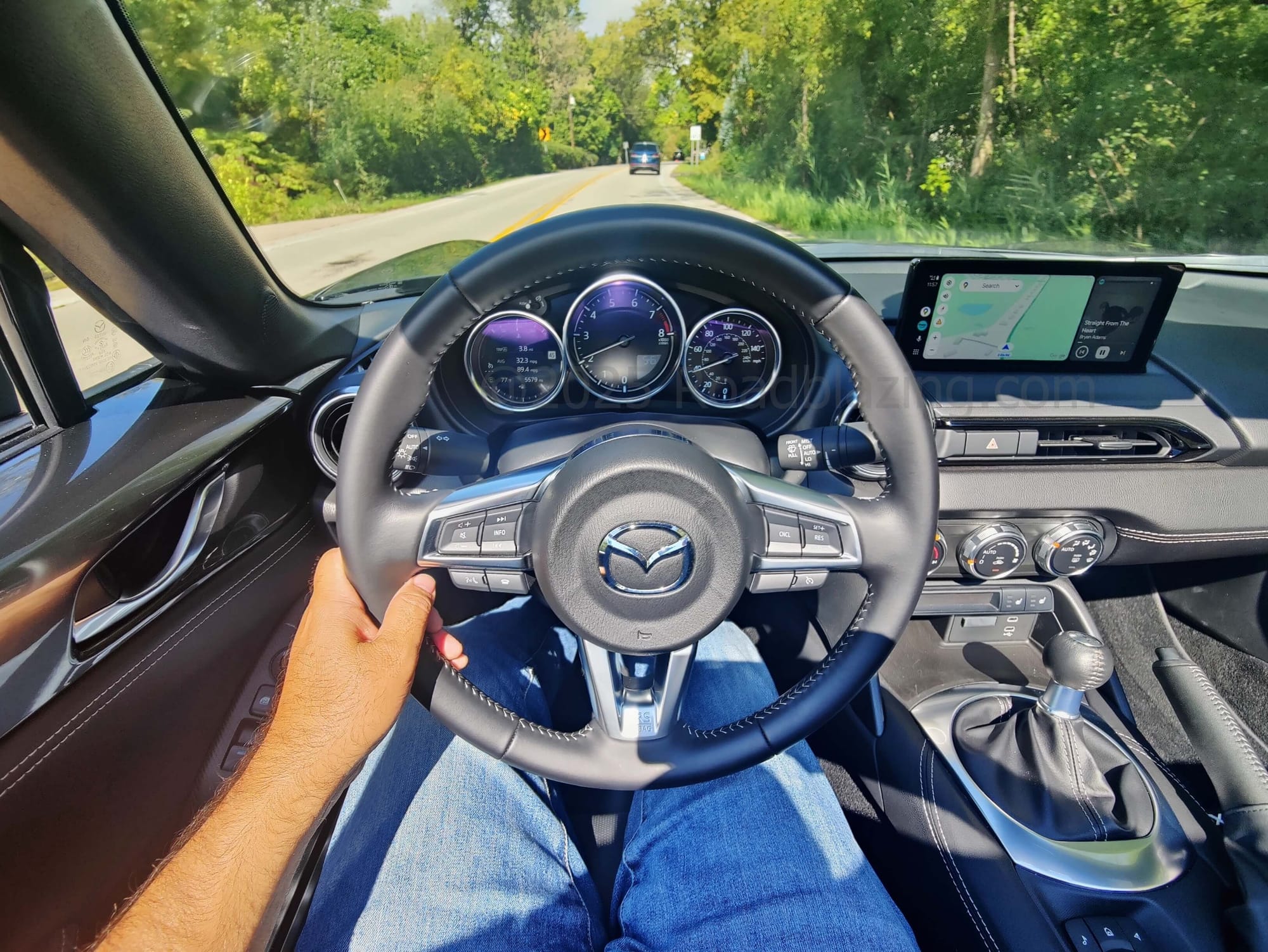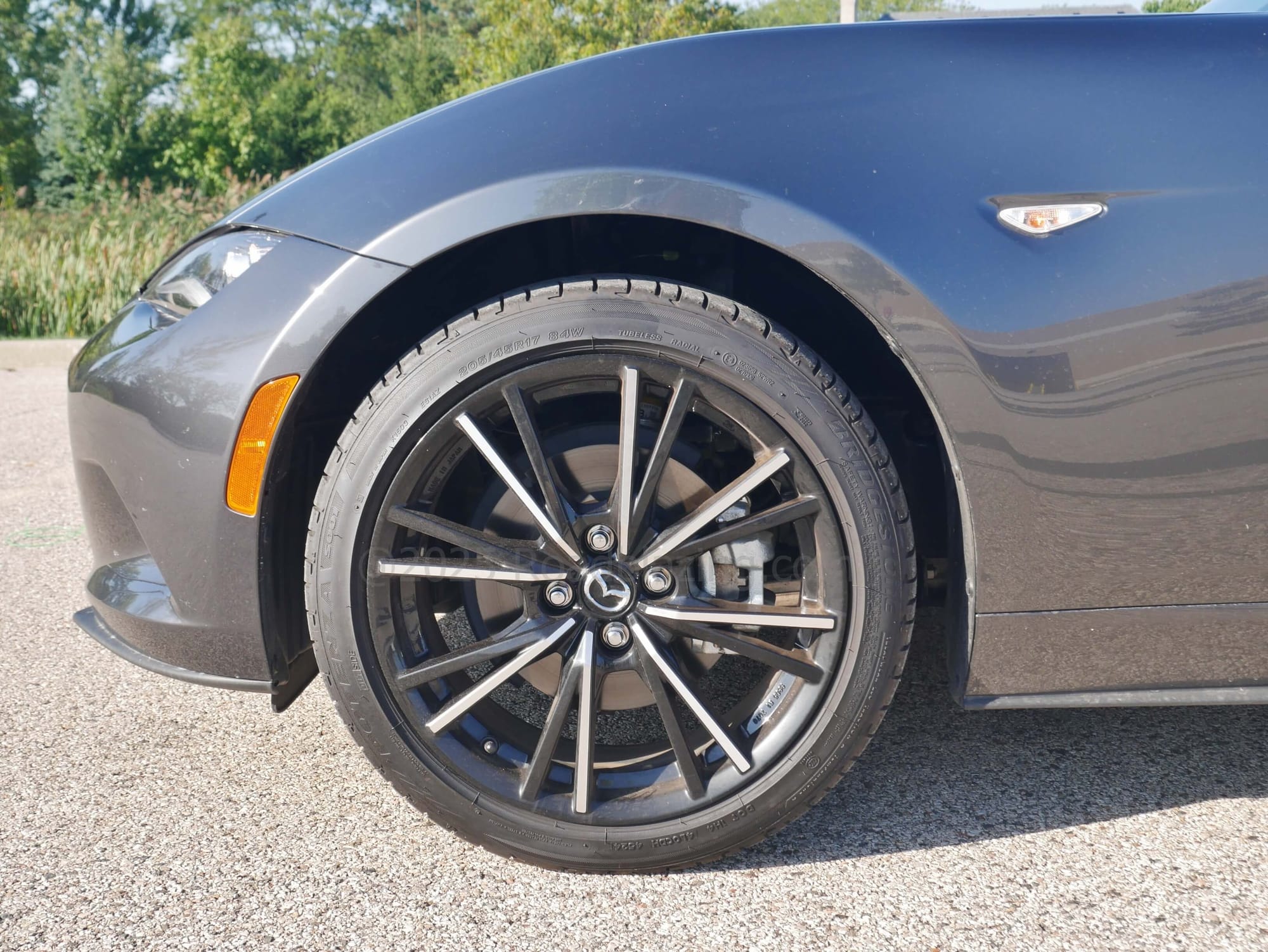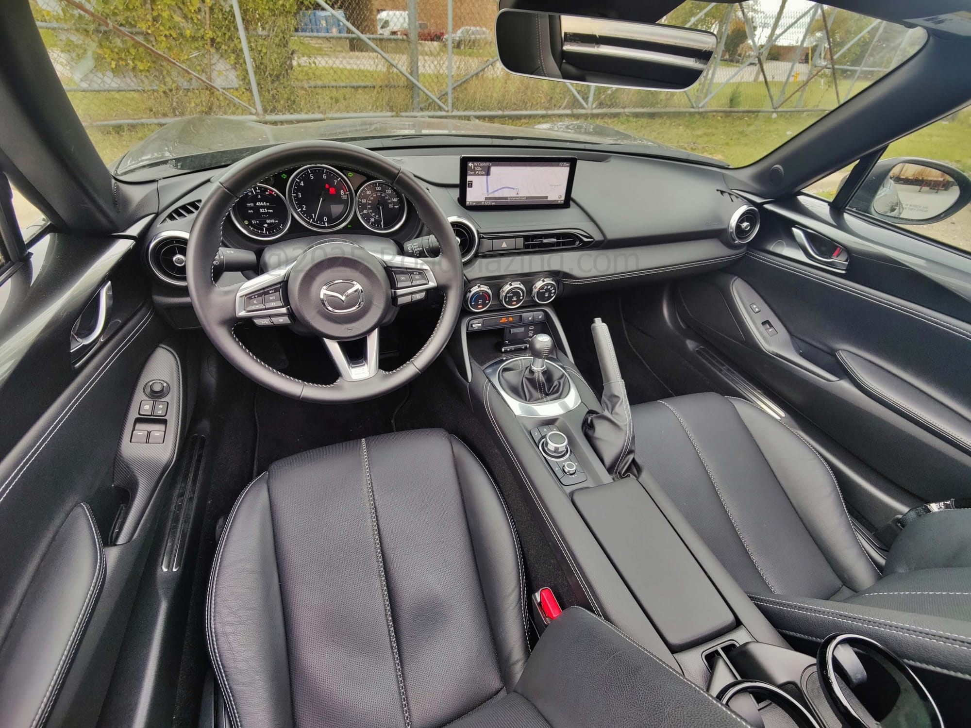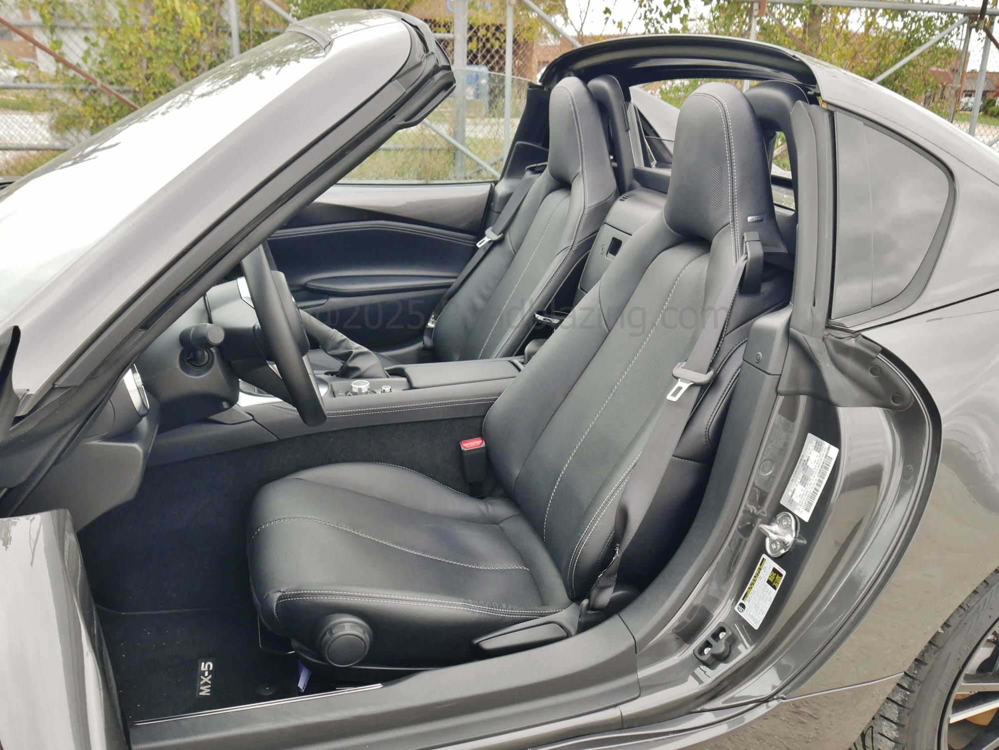 - $39,380 price, as tested 2025 Mazda MX-5 Miata Grand Touring RF 6-speed manual in Machine Gray Metallic + black leather seats (MX-5 Sport manual from $30,585)