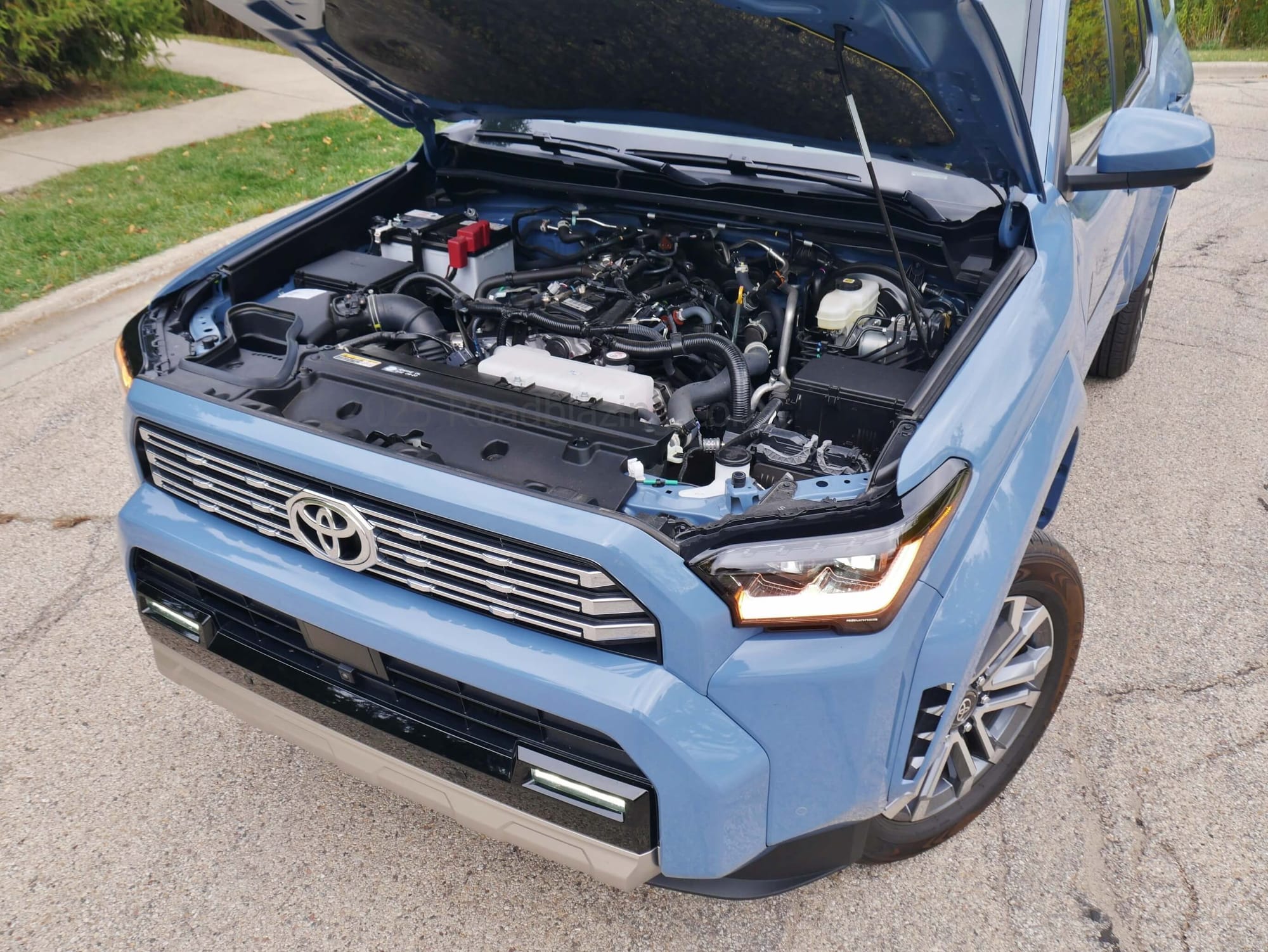 Likely part of the brand's Beyond Zero strategy, a twin scroll turbocharged inline-four petrol engine lies under the bonnet of every 2025 Toyota 4Runner. Whereas some two-row trims are available with optional battery electric hybrid power, three-row SR5 and Limited 4Runners sacrifice traction battery space for floor collapsing rear passenger space.