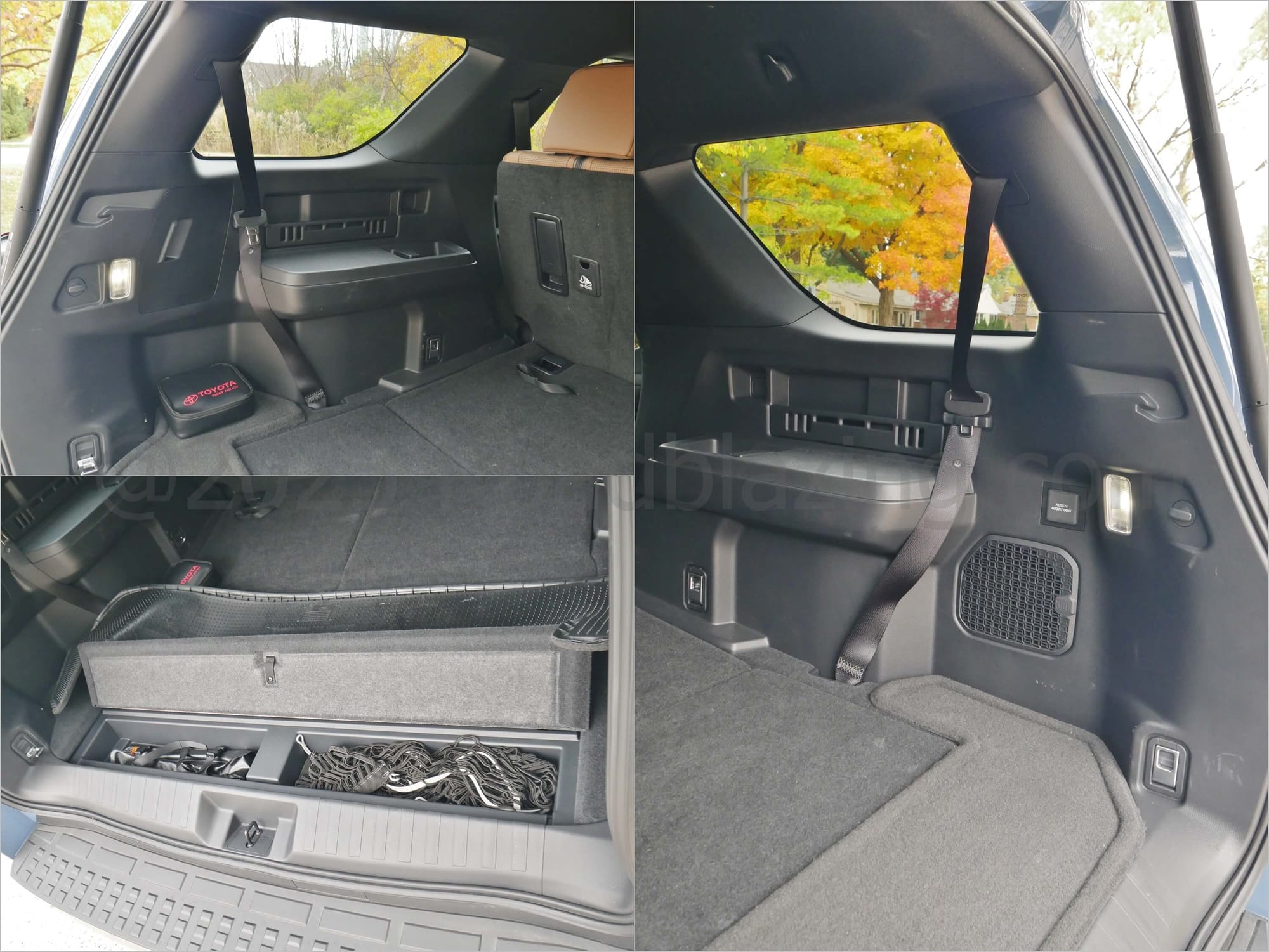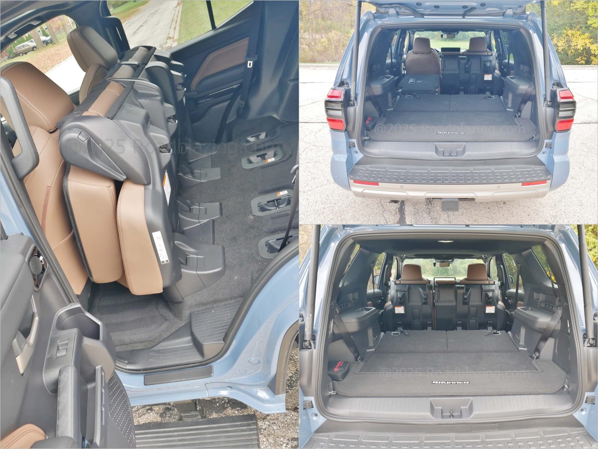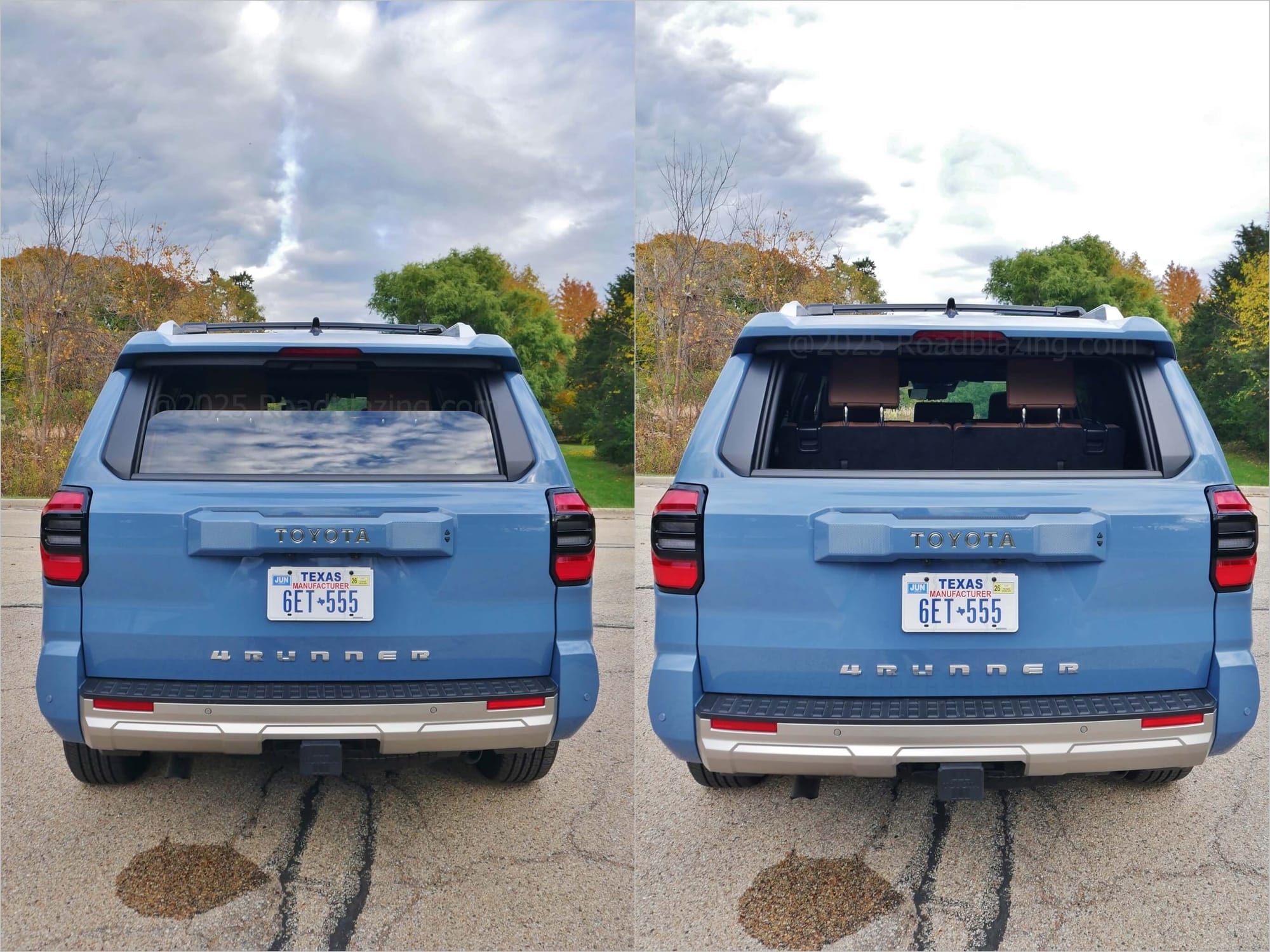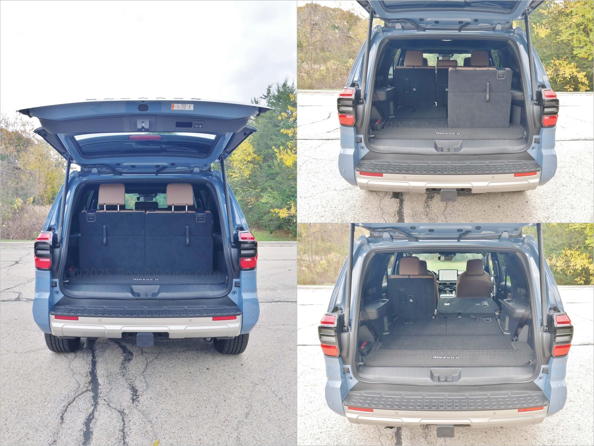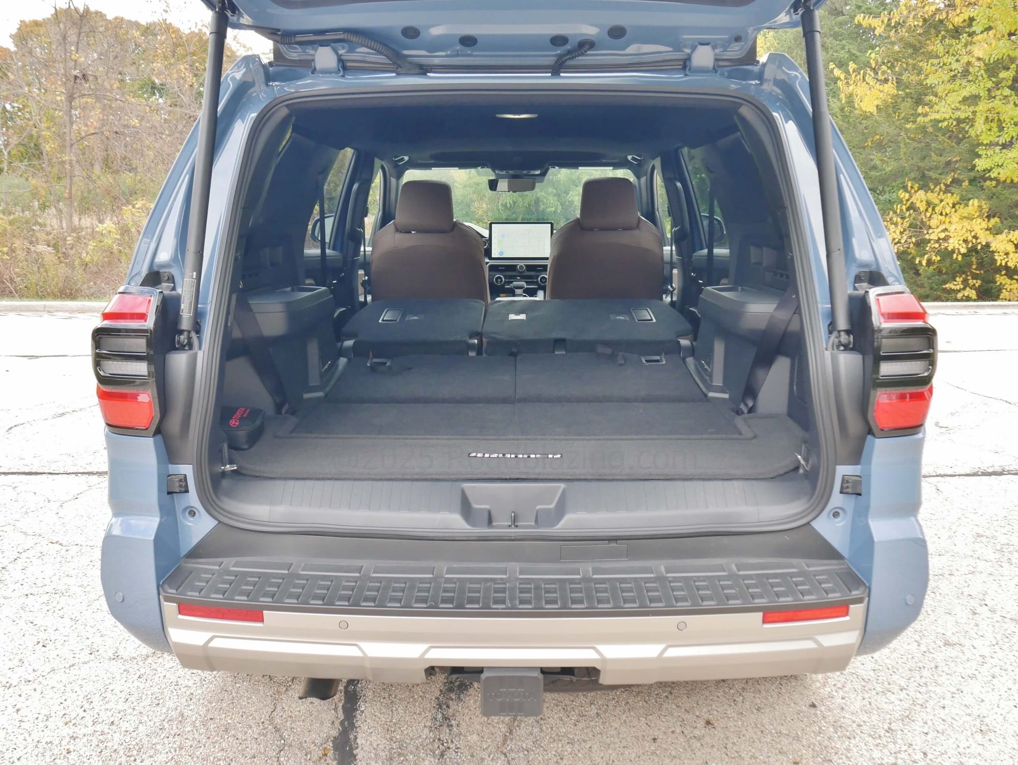 Either two or three row configuration in the 2026 Toyota 4Runner doesn't hamper maximum expanded cargo capacity. In the tested seven place Limited series, the space behind the vestigial third row will fit a a single row of paper grocery bags stacked two high. It is a given that, most of the time, owners will keep Row 3 stowed. The reprised power retracting backlight window provides easy reach-in stowing and retrieval.
