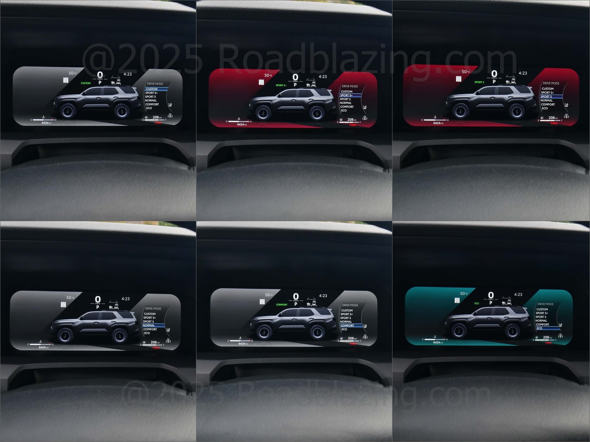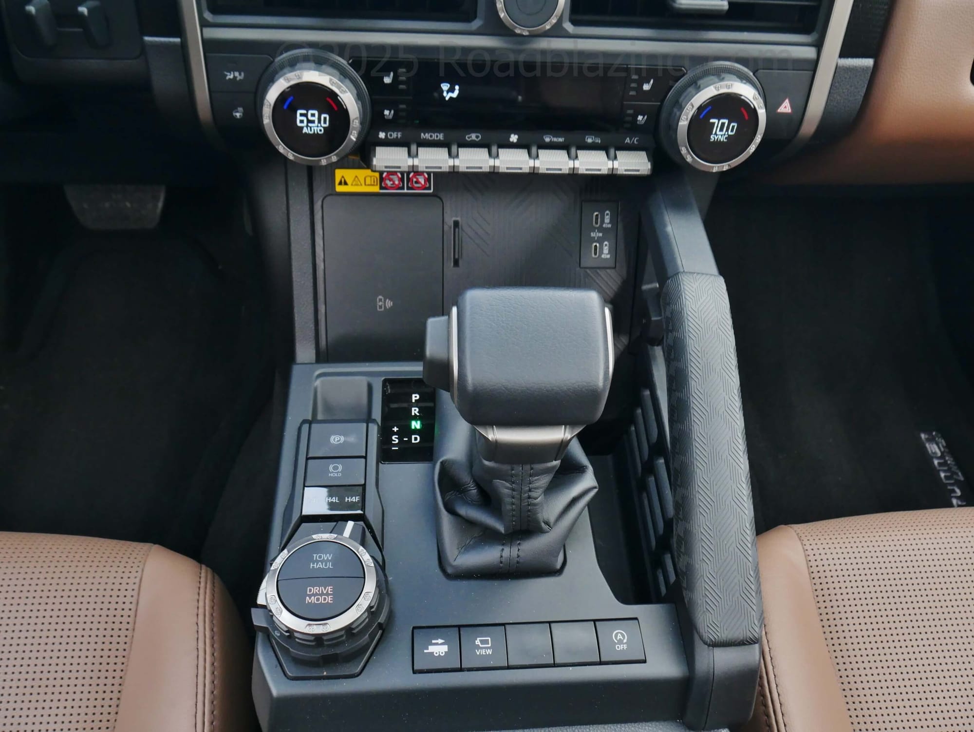Theoretically, all 4x4 equipped N500 4Runners are off-road trail competent, when they come equipped with four-wheel drive, a feature that is optional in the Limited. In the case of the prestigious 2025 Toyota 4Runner Limited [and standard on the out-ranking Platinum] it is a full-time all-wheel drive system that varies the front to rear wheel traction via Torsen differential slippage, through an electronic two-speed transfer case, controlled to a center console rotary dial, seen in the Tacoma pickup, (which doubles for drive mode and trailer mode selection), and adjacent buttons.