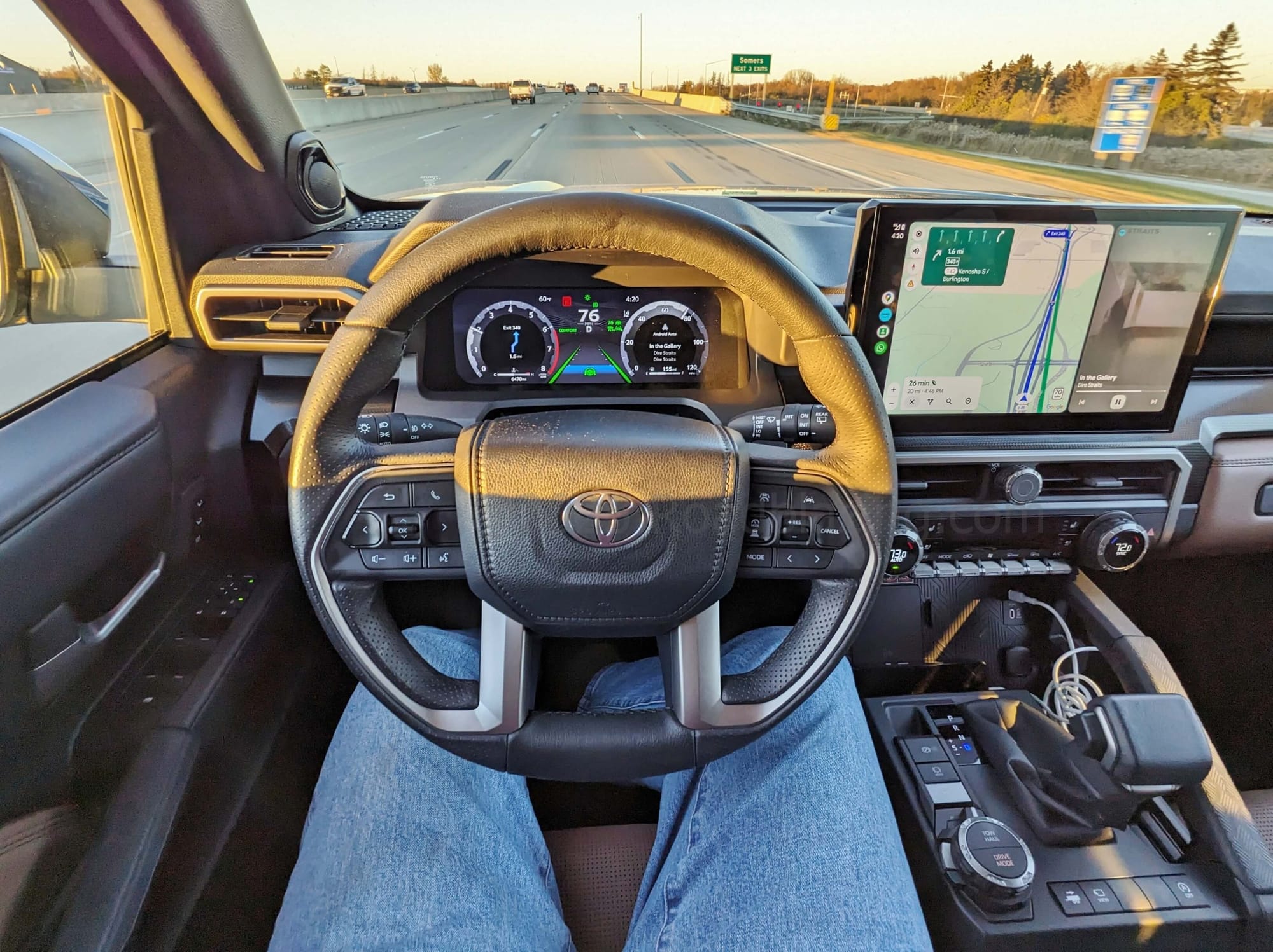 The signature comms and entertainment feature of the 2026 4Runner Limited Toyota Connected 14.0" landscape touch LCD media tablet. Accurately tapping icons in any truck is a challenge, avoided by extensive voice controls. The "Hey Toyota" wake-up activated user interface is intuitive, though daytime color contrast could be better. Subscription support begets native smart navigation and enhanced Google queries.