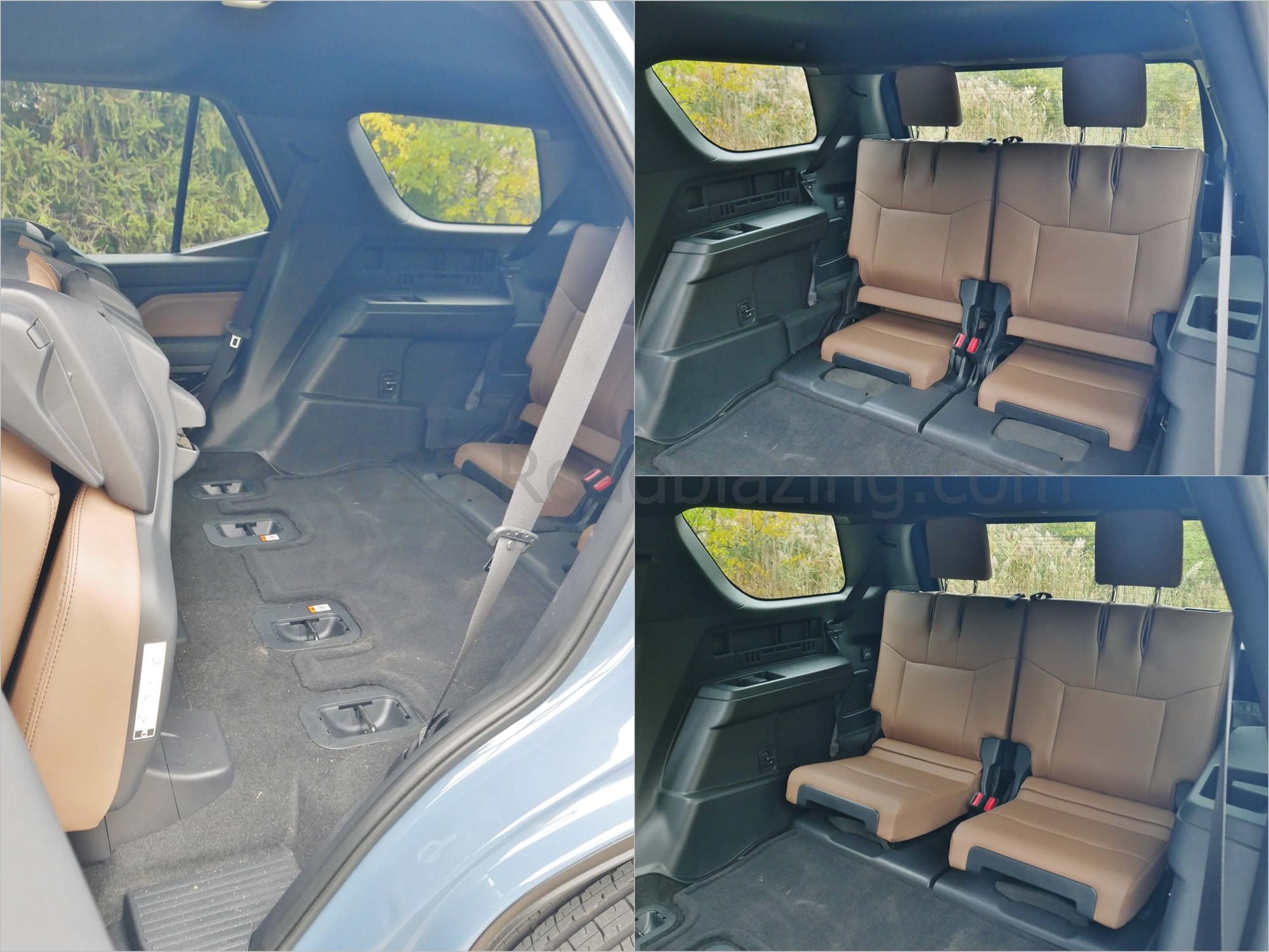 The more than two inch wheelbase stretch from the last generation N280 progenitor, benefits the 2nd Row of the 2025 4Runner. Aft first row center console ducts, USB ports and a 110V AC outlet serve three average adults. Step up is reasonable given the wide running boards and B-pillar grab handles. The third row, grows fractionally, remaining as vestigial as they come. But that's better than any Jeep Wrangler Unlimited or Ford Bronco 5-door. Raising the backs is pretty conventional, though raising the cushions involves squeezing behind both sides of the second row. Though obligatory outboard armrests with bottle holders have been thrown in, charging ports or climate vents are absent.