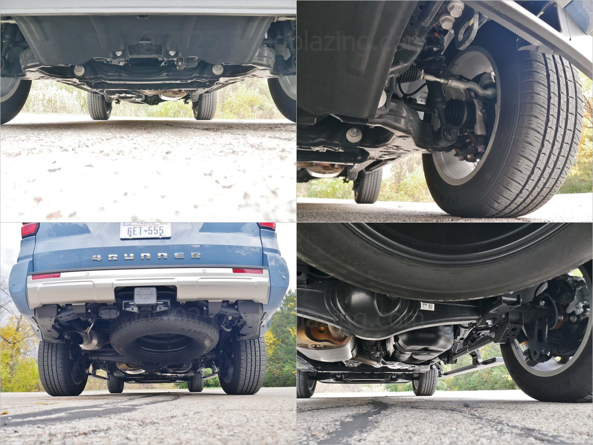 - Front independent, rear solid axle suspensions, electronic adaptive dampers