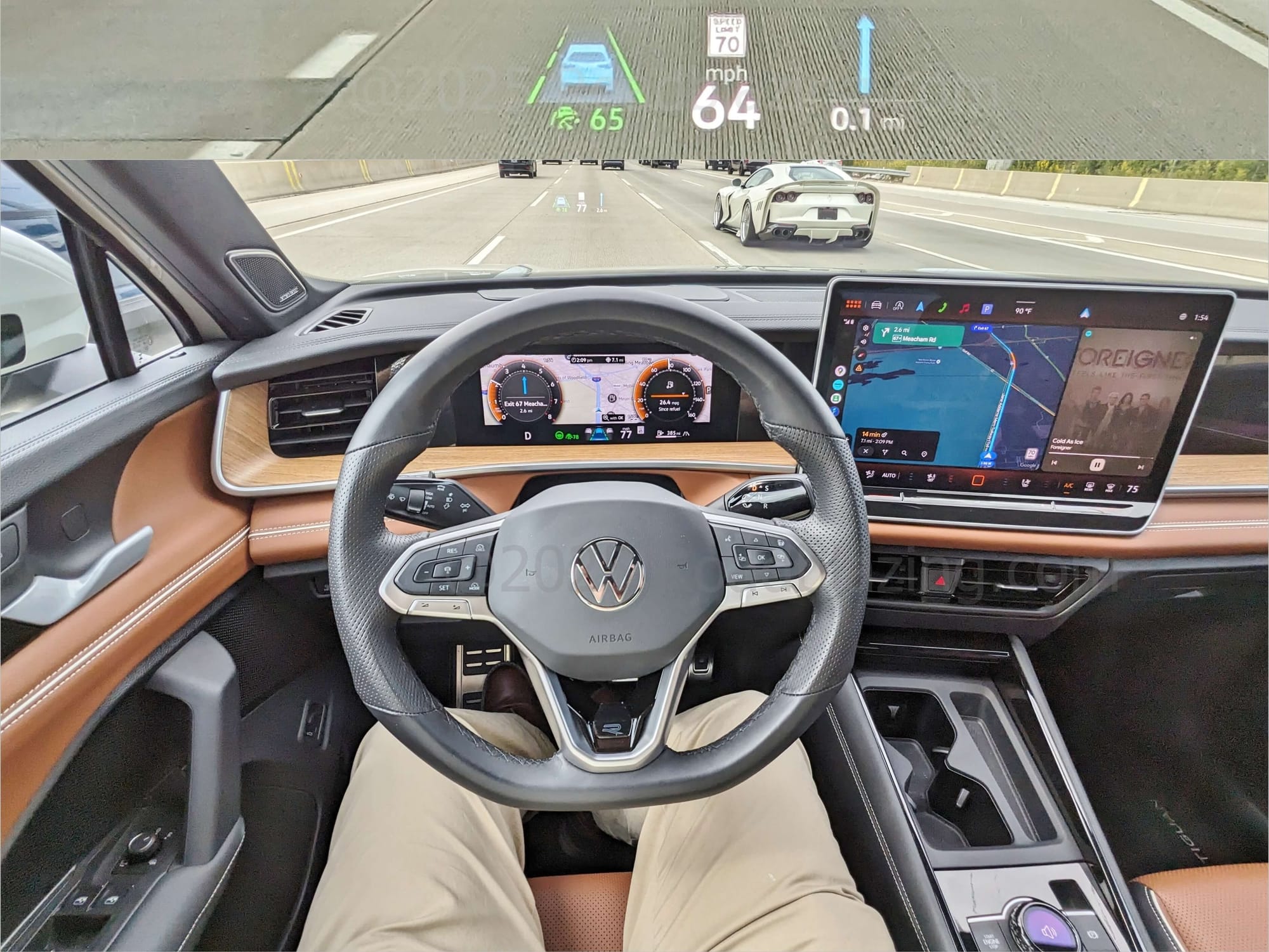 Cool Gizmo(s): √ NEW FOR '25 shift by wire steering wheel right side twist shifter stalk (similar to ID electric models); √ Media display gesture activation; √ Panoramic glass roof;(-1 Finger touch + drag overhead console operation) √ 10.25" inch Digital Cockpit Pro configurable LCD instrument cluster w/ infotainment navigation map mirroring; √ 30 variable color ambient cabin dash, door panel & footwell illumination + passenger side dashboard "R" lettering set in stars; √ Overhead console finger drag zone map lighting.