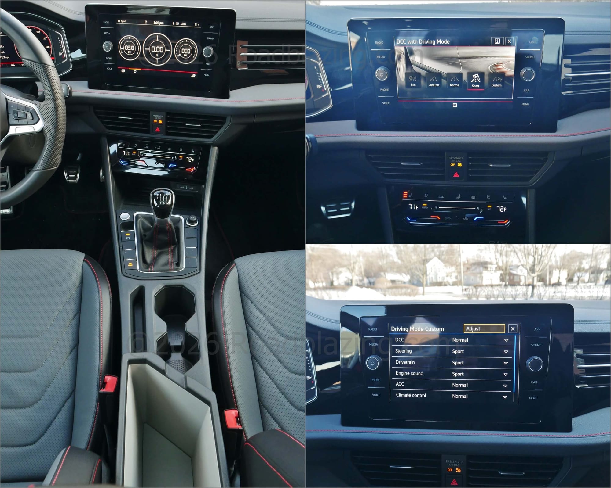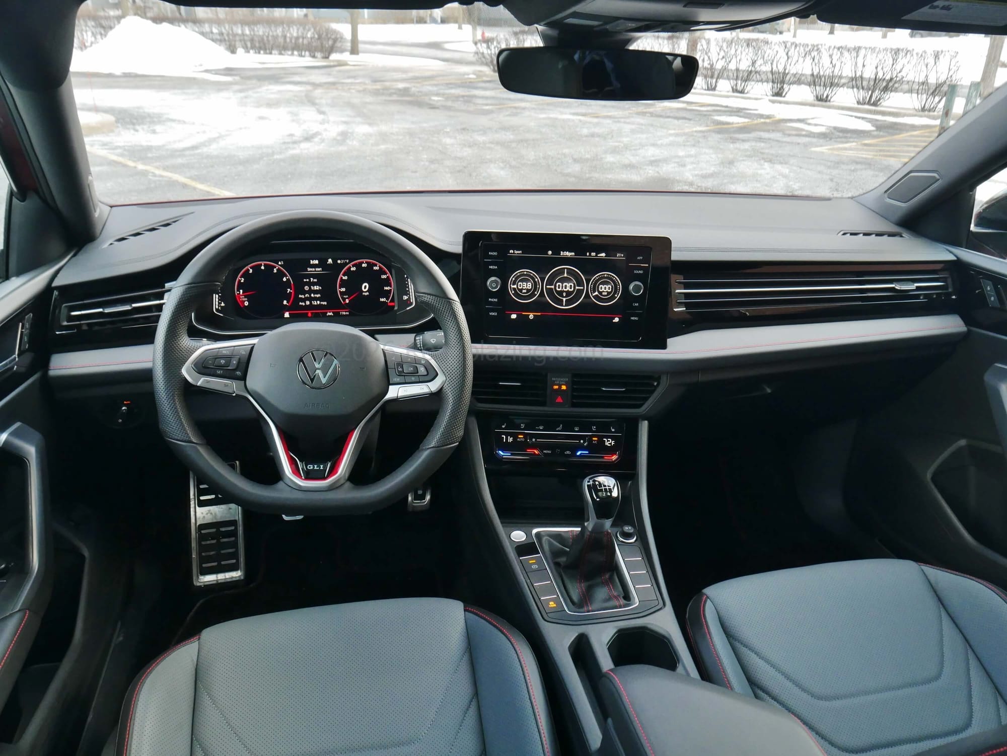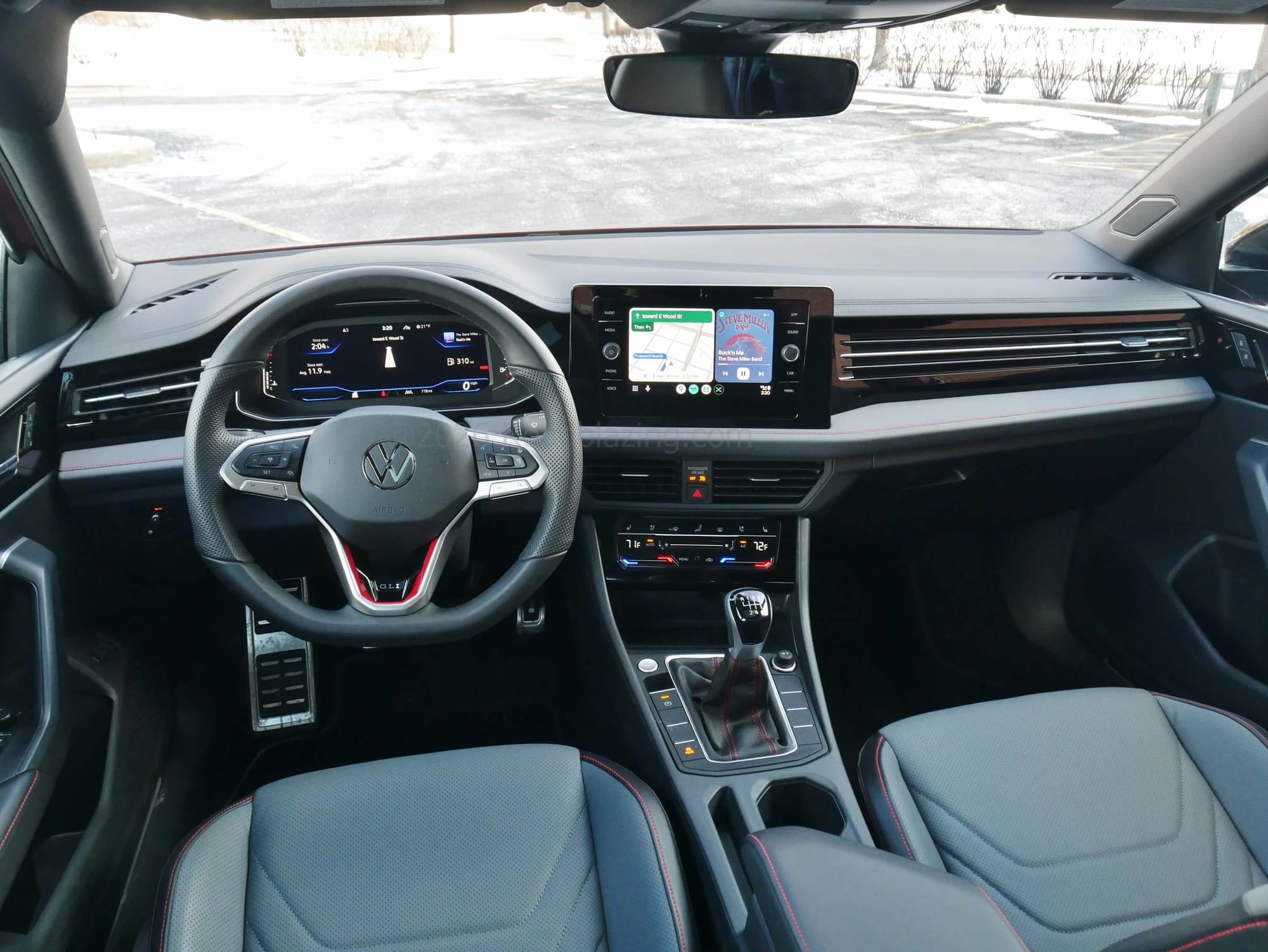 2026 Volkswagen Jetta GLI Autobahn Manual: plusher mid-dash & front door cards, dash vent matched lateral straking, tap & slide steering wheel & climate controls