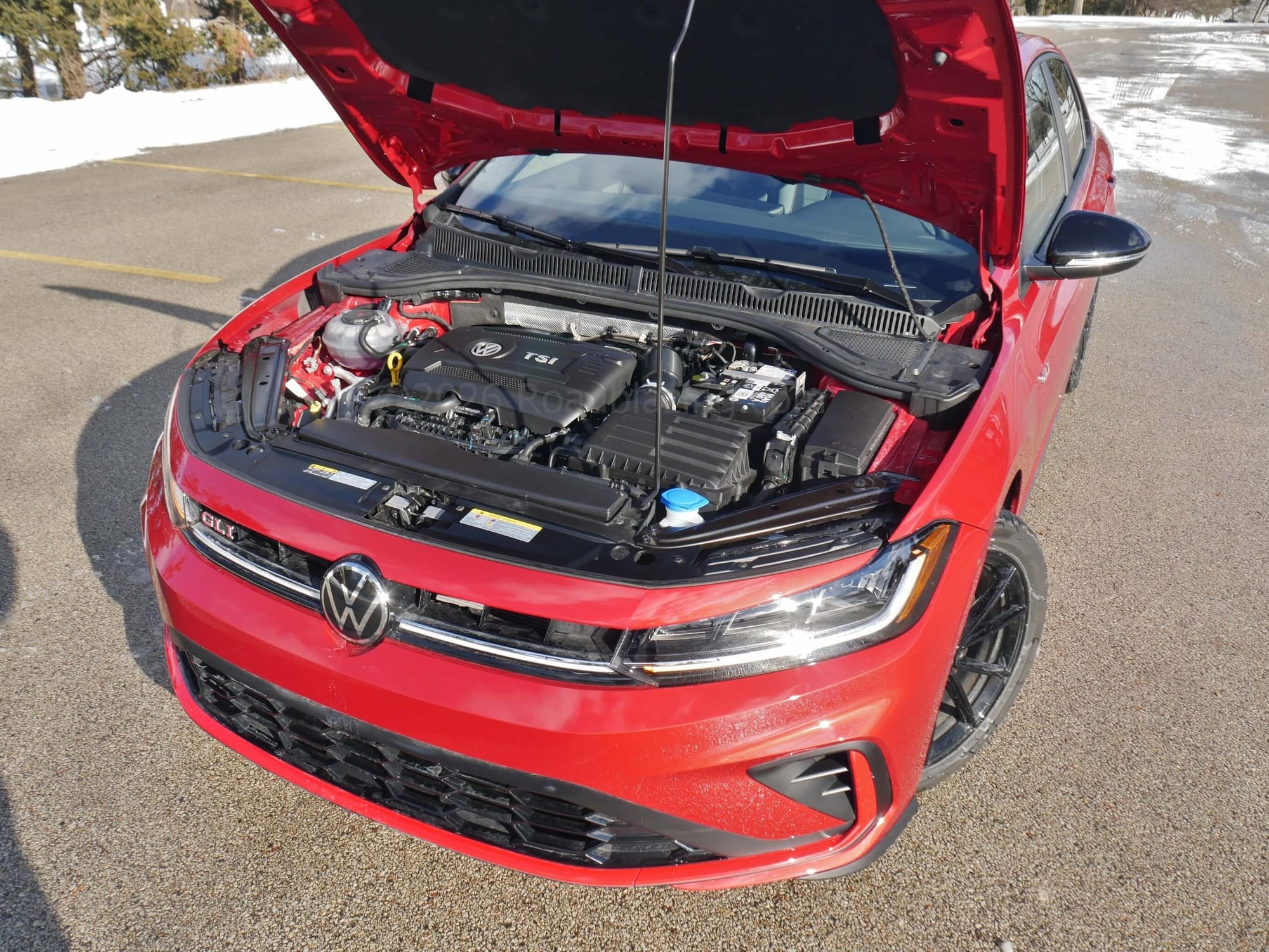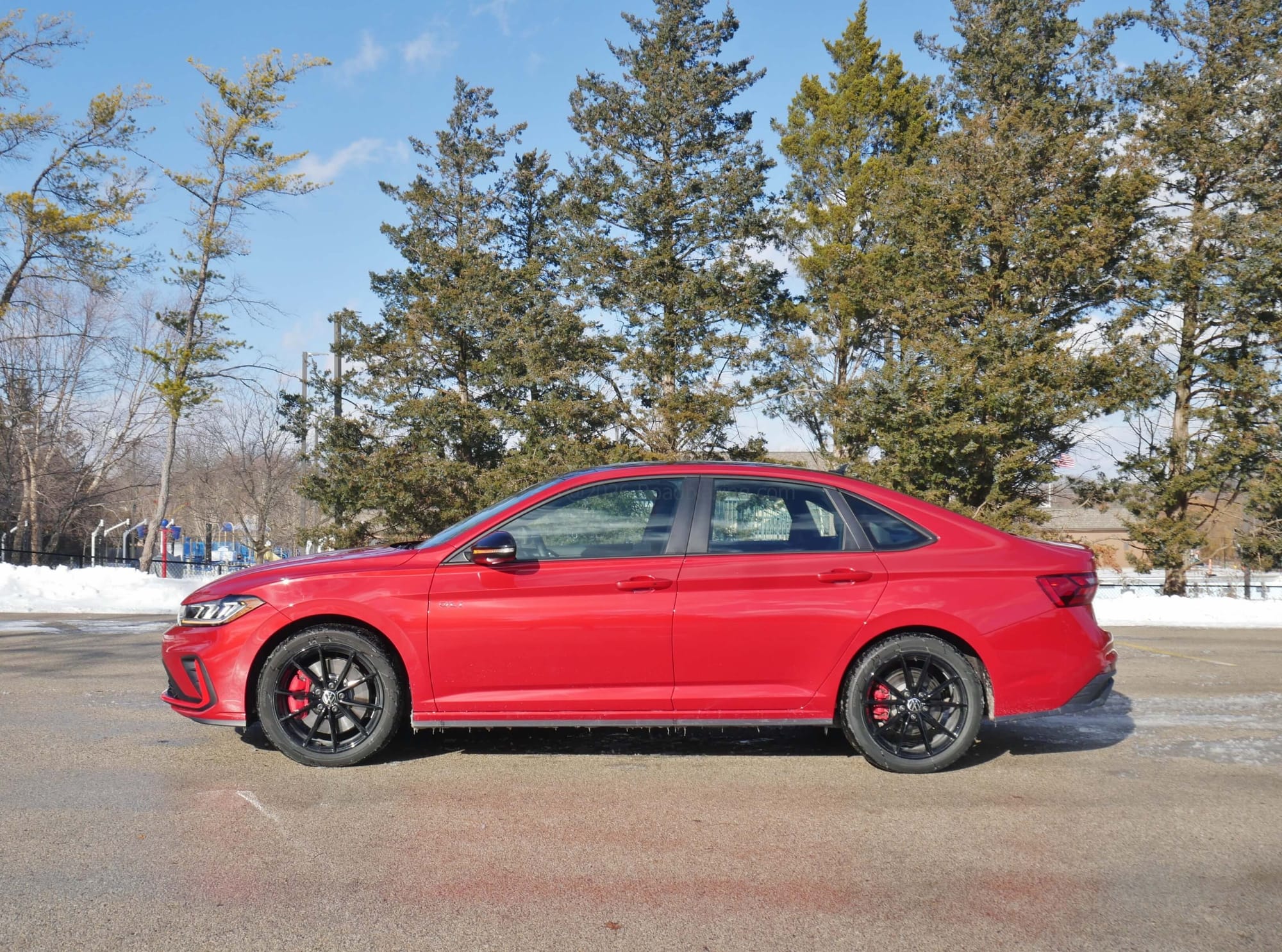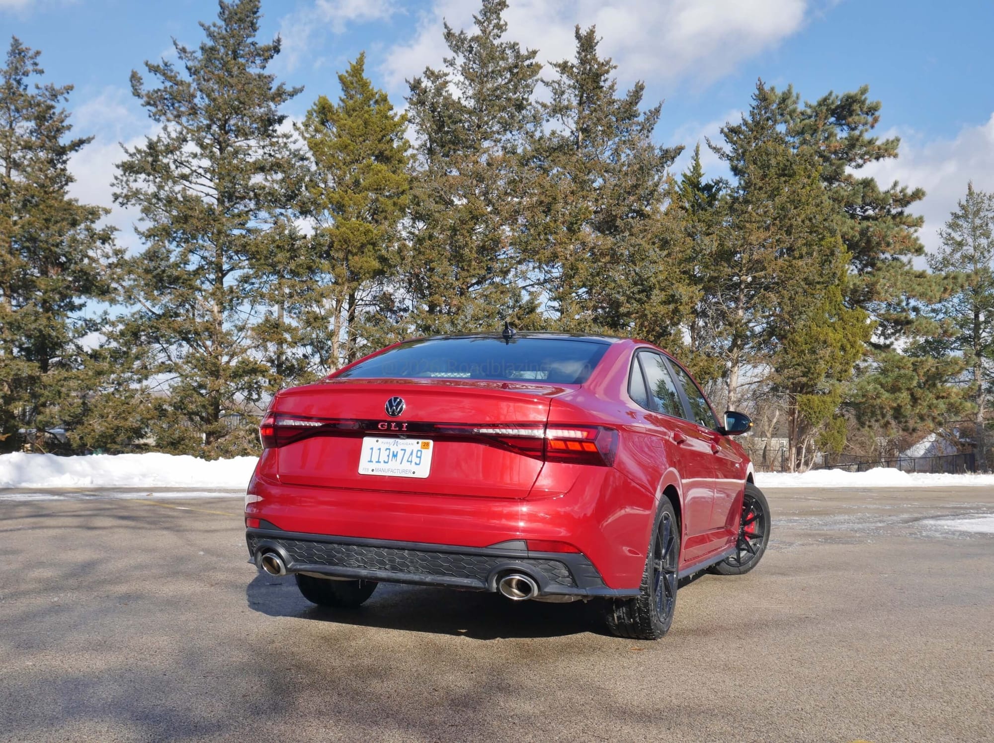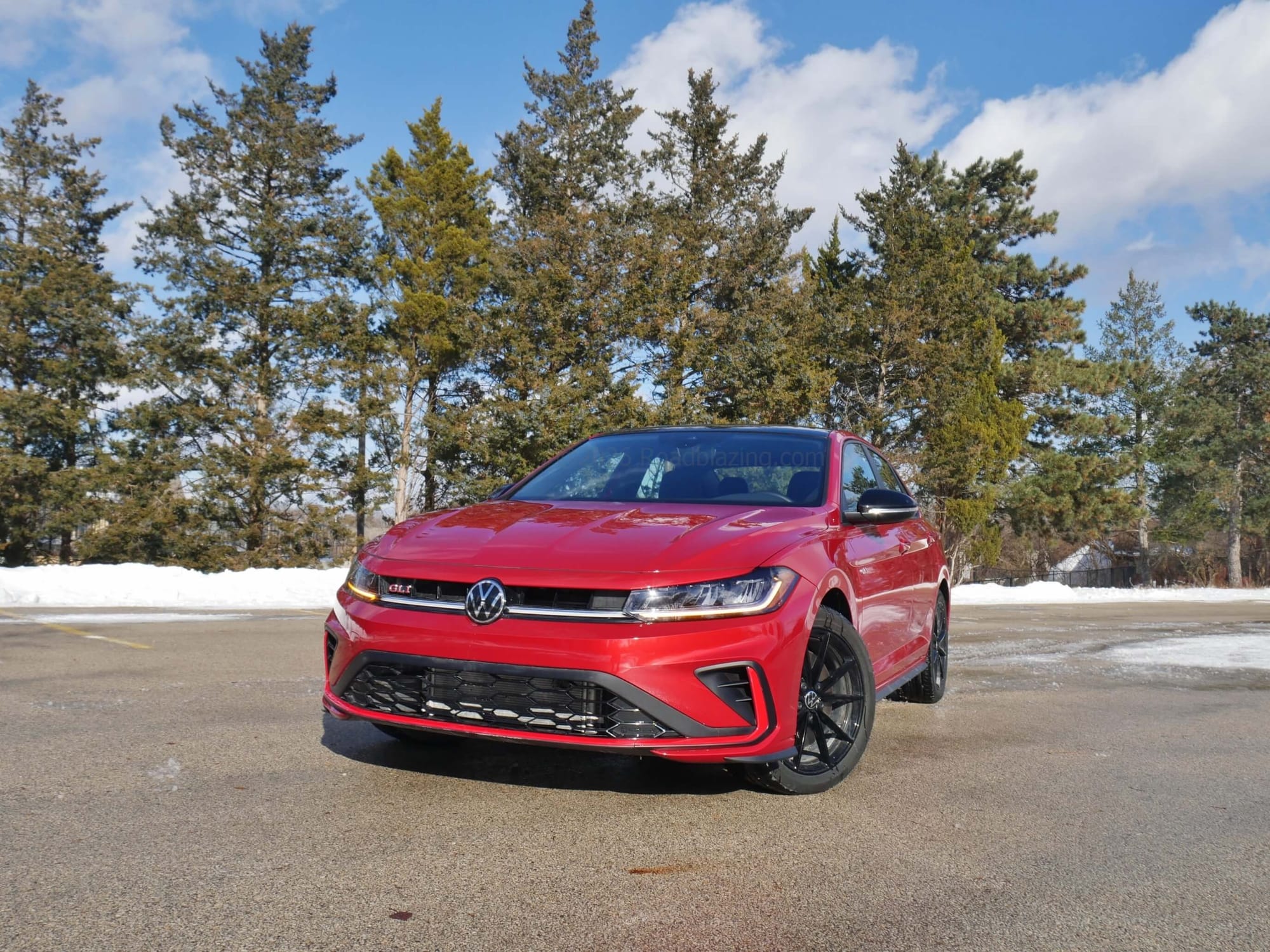 - $36,125 price, as tested 2026 Volkswagen Jetta GLI Autobahn front-drive 6-speed manual in Kings Red + dark roof package